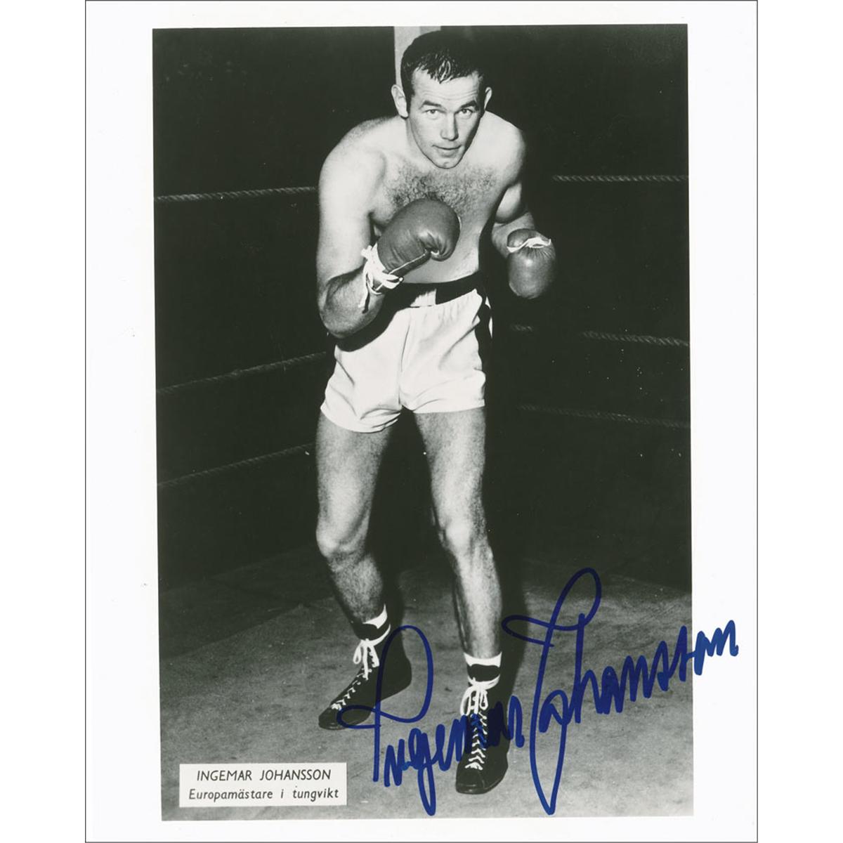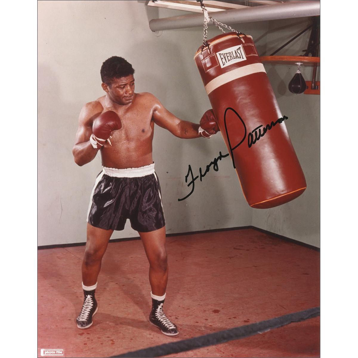 Color glossy 8 x 10 photo of Patterson working the heavy bag, signed in black felt tip; and a glossy 8 x 10 photo of Johansson posing in the ring, signed in blue felt tip. In fine condition.