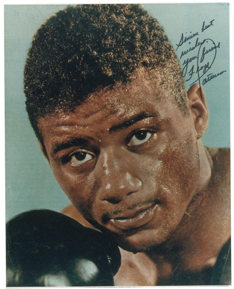 Intense color glossy 8 x 10 close-up photo, signed in black felt tip, “Sincere best wishes, your friend, Floyd Patterson.” In fine condition.