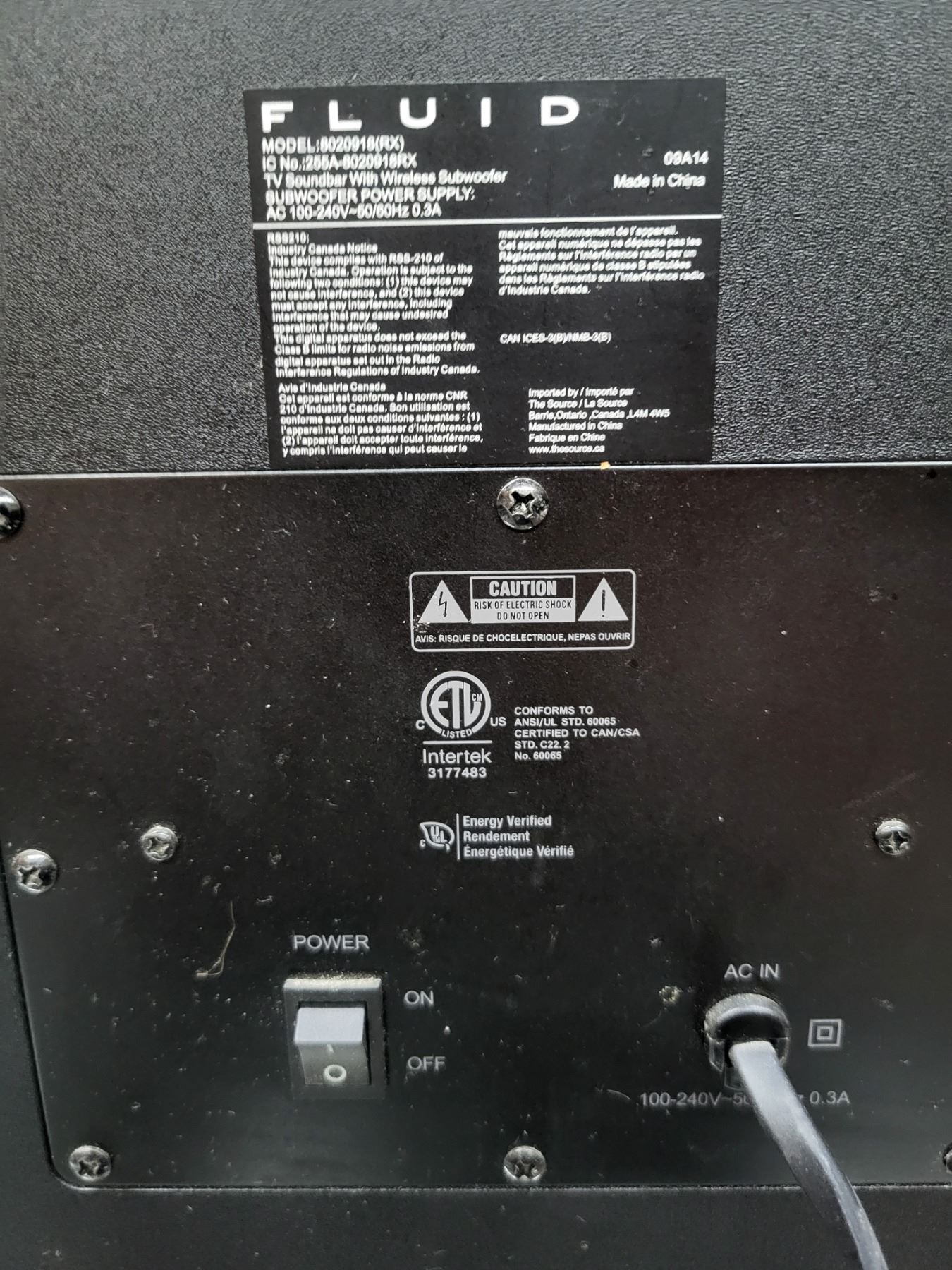 Fluid | Wireless Subwoofer | Model 8020918(RX)