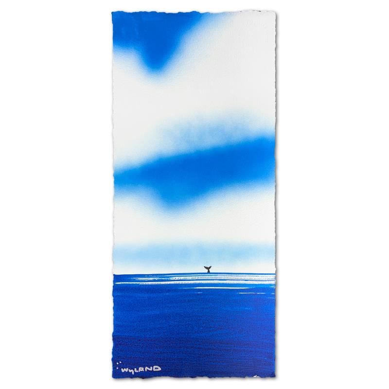 "Fluke" is an original painting acrylic on deckle edge paper by Wyland. Hand signed by the artist, the piece comes custom framed and with a letter of authenticity. Measures approximately 26.5" x 14.5" (framed), 22.5" x 10.5" (image). This item requires sp