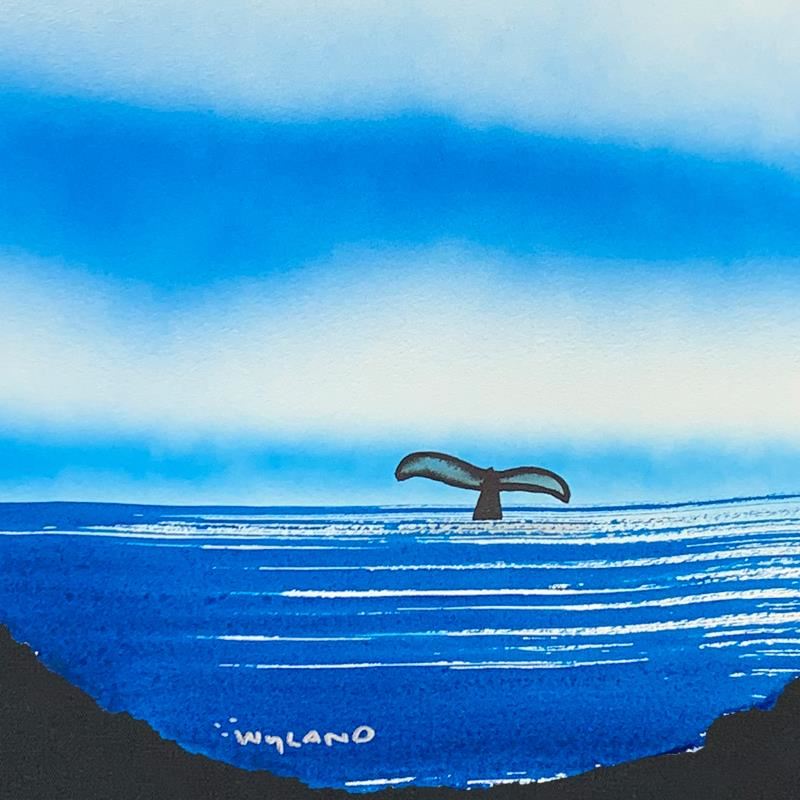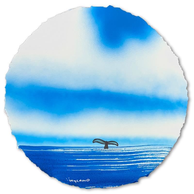 "Fluke" is an original painting, watercolor on deckle edge paper by Wyland. Hand signed by the artist, the piece comes custom framed and with a letter of authenticity. Measures approximately 30" x 30" (framed), 19.5" x 19.5" (image).