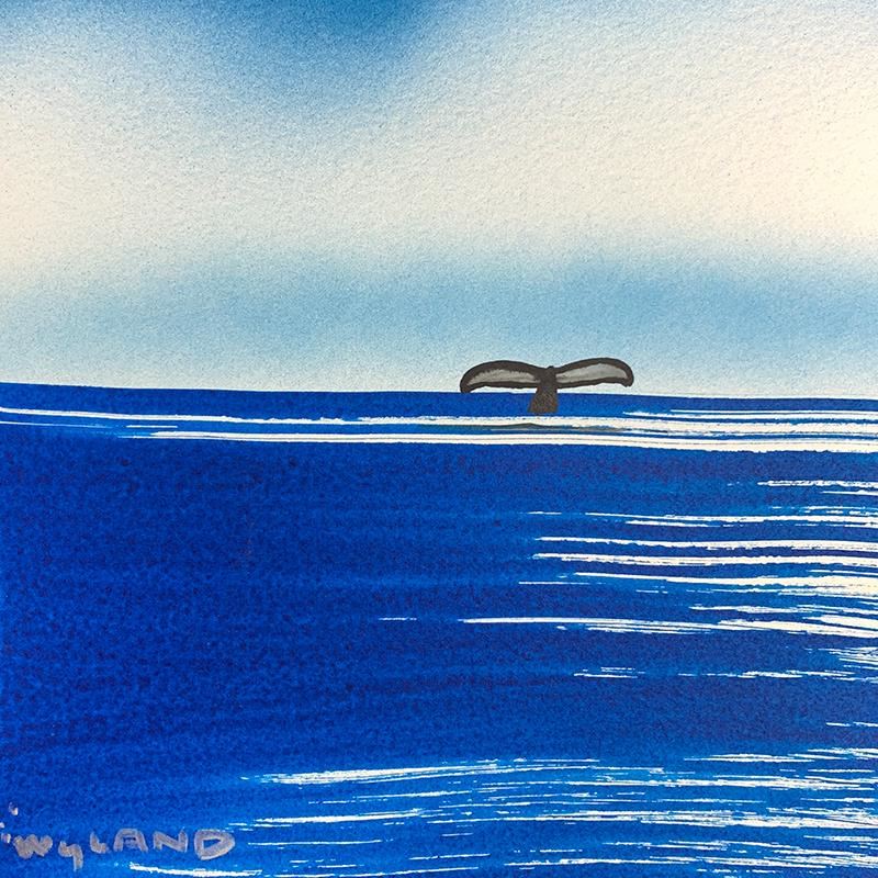 "Fluke" is an original painting acrylic on deckle edge paper by Wyland. Hand signed by the artist, the piece comes custom framed and with a letter of authenticity. Measures approximately 26.5" x 14.5" (framed), 22.5" x 10.5" (image). This item requires special handling and may have a longer than usual turnaround