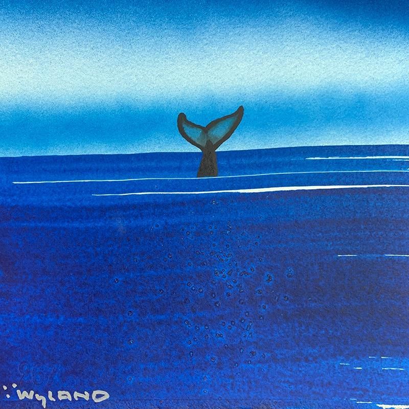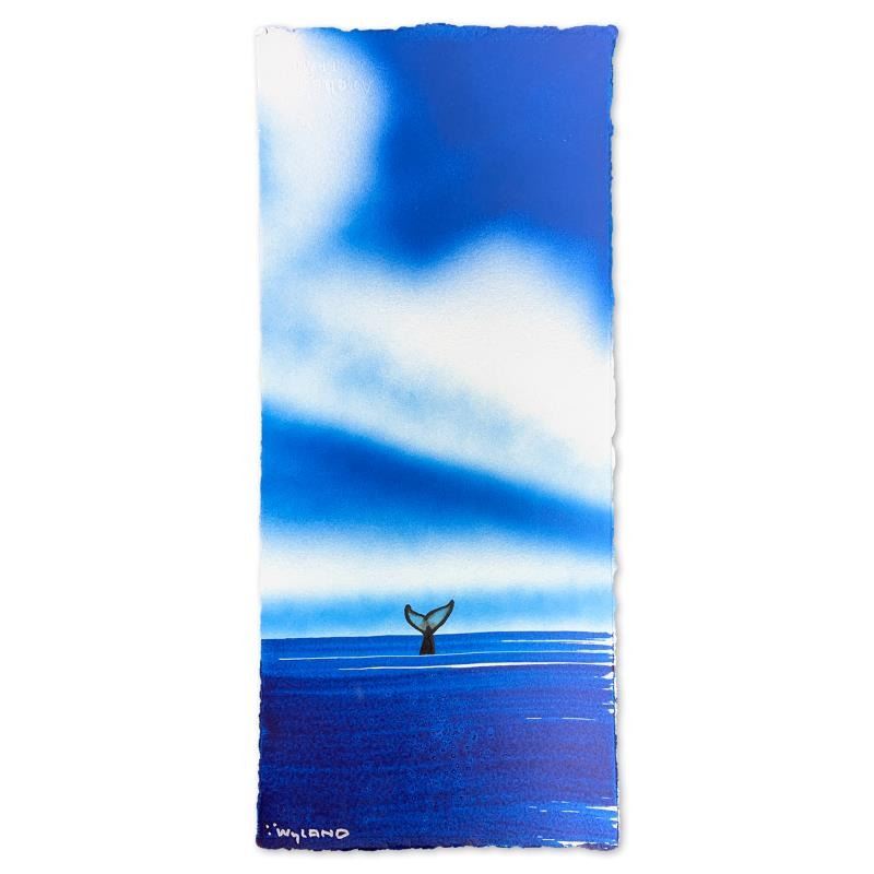 "Fluke" is an original painting acrylic on deckle edge paper by Wyland. Hand signed by the artist, the piece comes custom framed and with a letter of authenticity. Measures approximately 26.5" x 14.5" (framed), 22.5" x 10.5" (image). This item requires sp