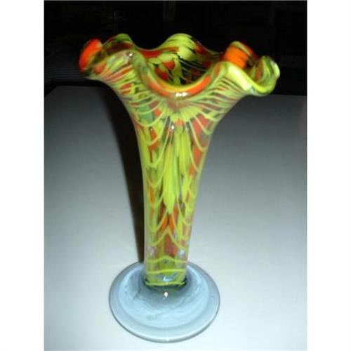 <tr><td>Title:Fluted Handblown Spatter Glass Vase</td></tr>