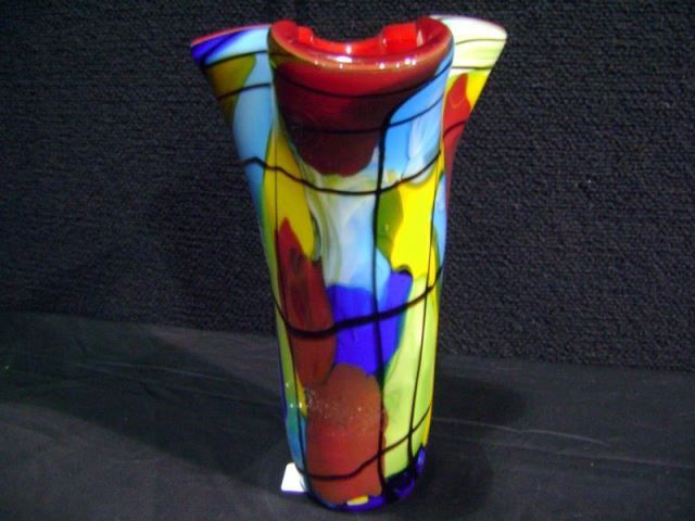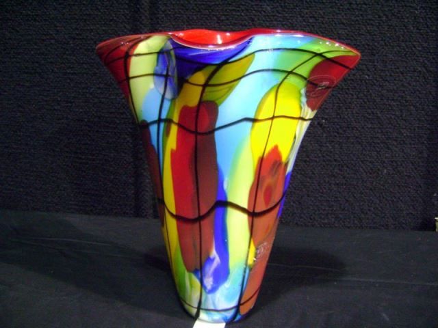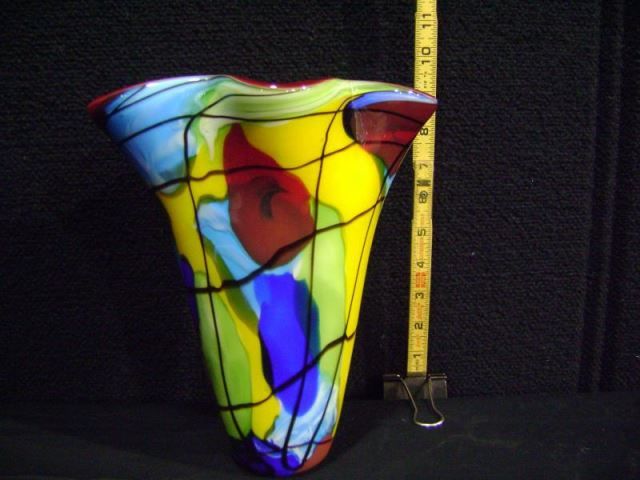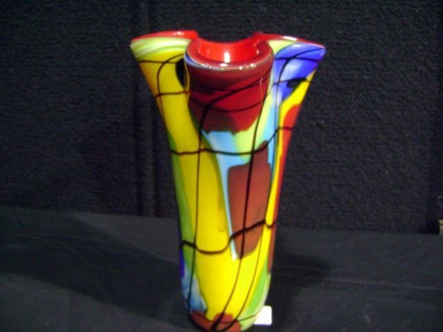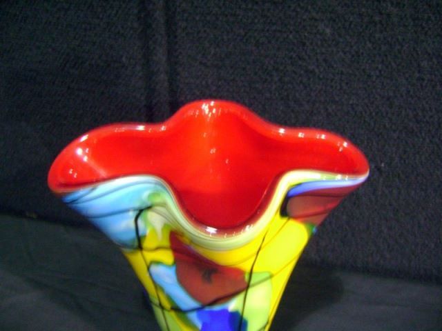 Fluted Scalloped Red Glass Vase-Chinese, Hand Blown 9 3/4"x8"x5 3/4" Retail: $275.00