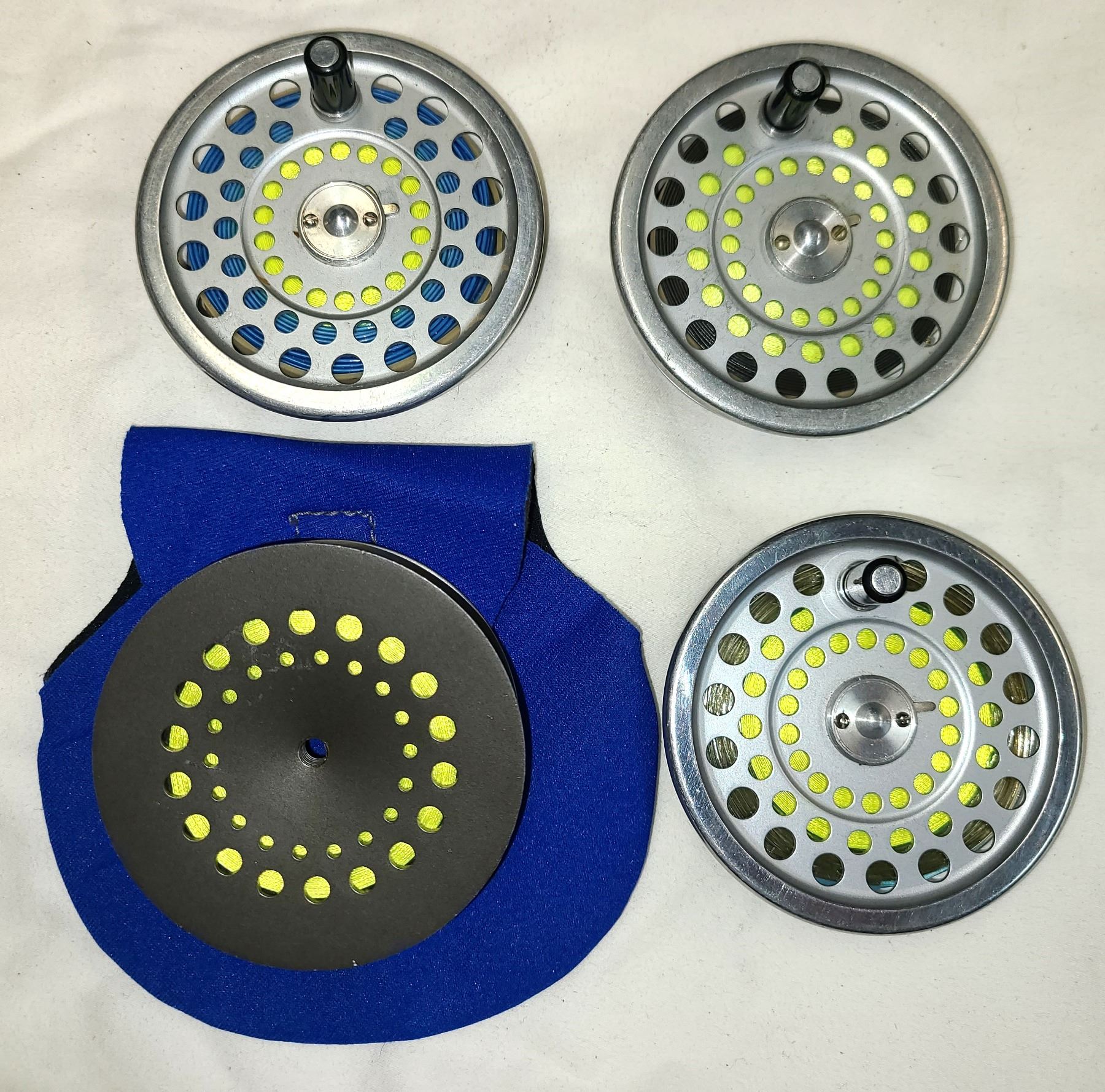 Fly Fishing Spare Spools 3 inch Metal x 4 c/w Spare Sleeve