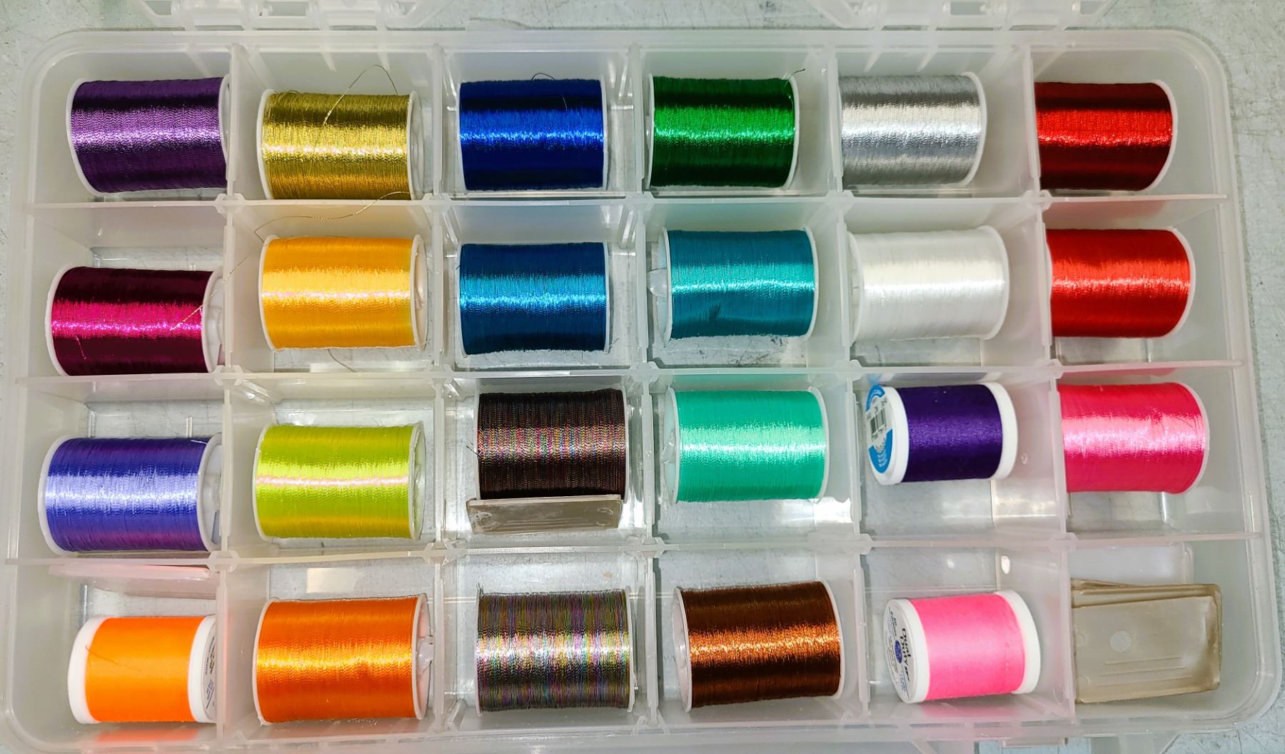 Box measures 14 x 8 x 2 inches - 23 Spools of thread..