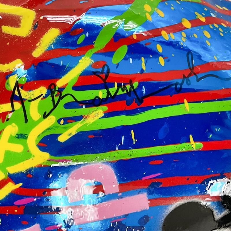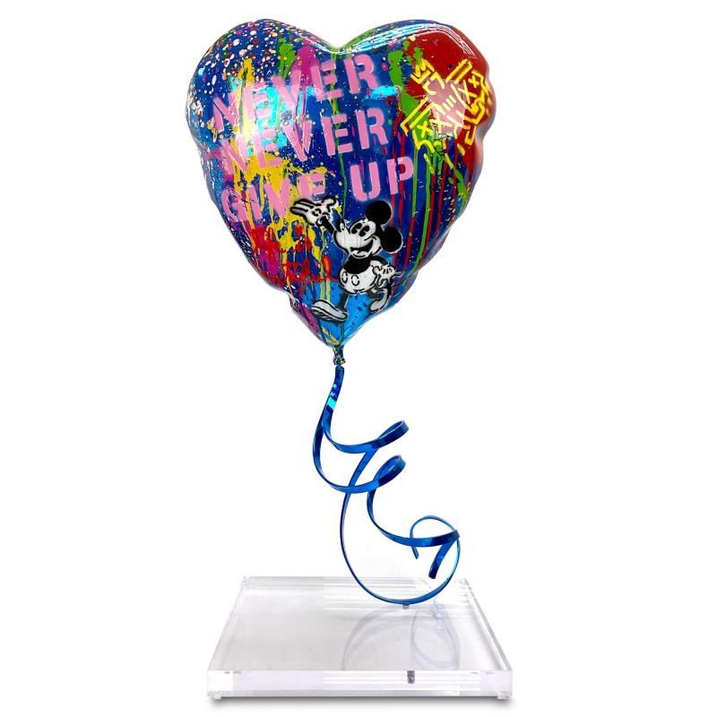 "Flying Balloon Heart" is an original mixed media sculpture by Mr. Brainwash, hand signed by the artist. Includes Certificate of Authenticity. Measures approx. 14" x 31" x 5"; 15" x 15" (base).