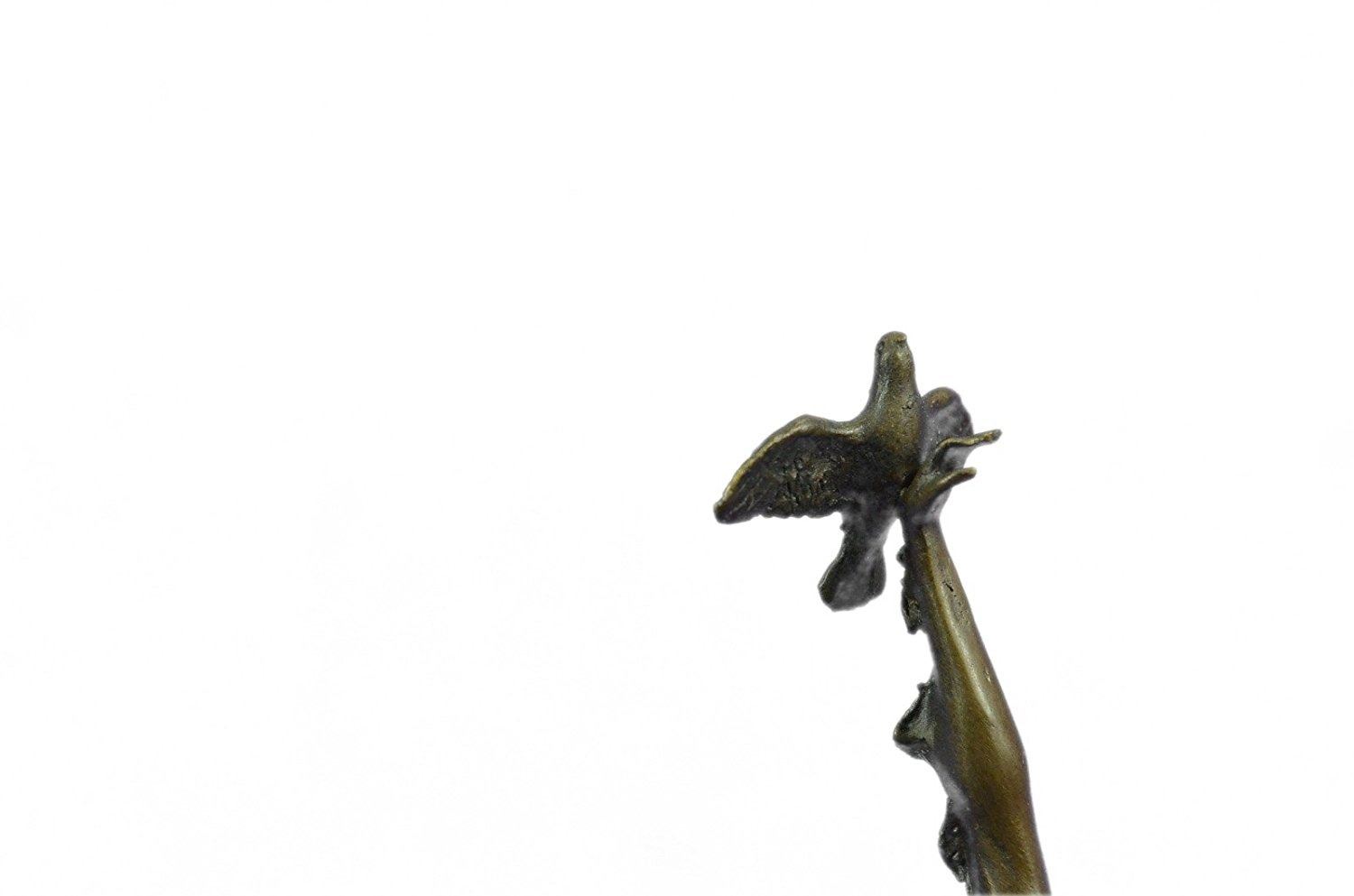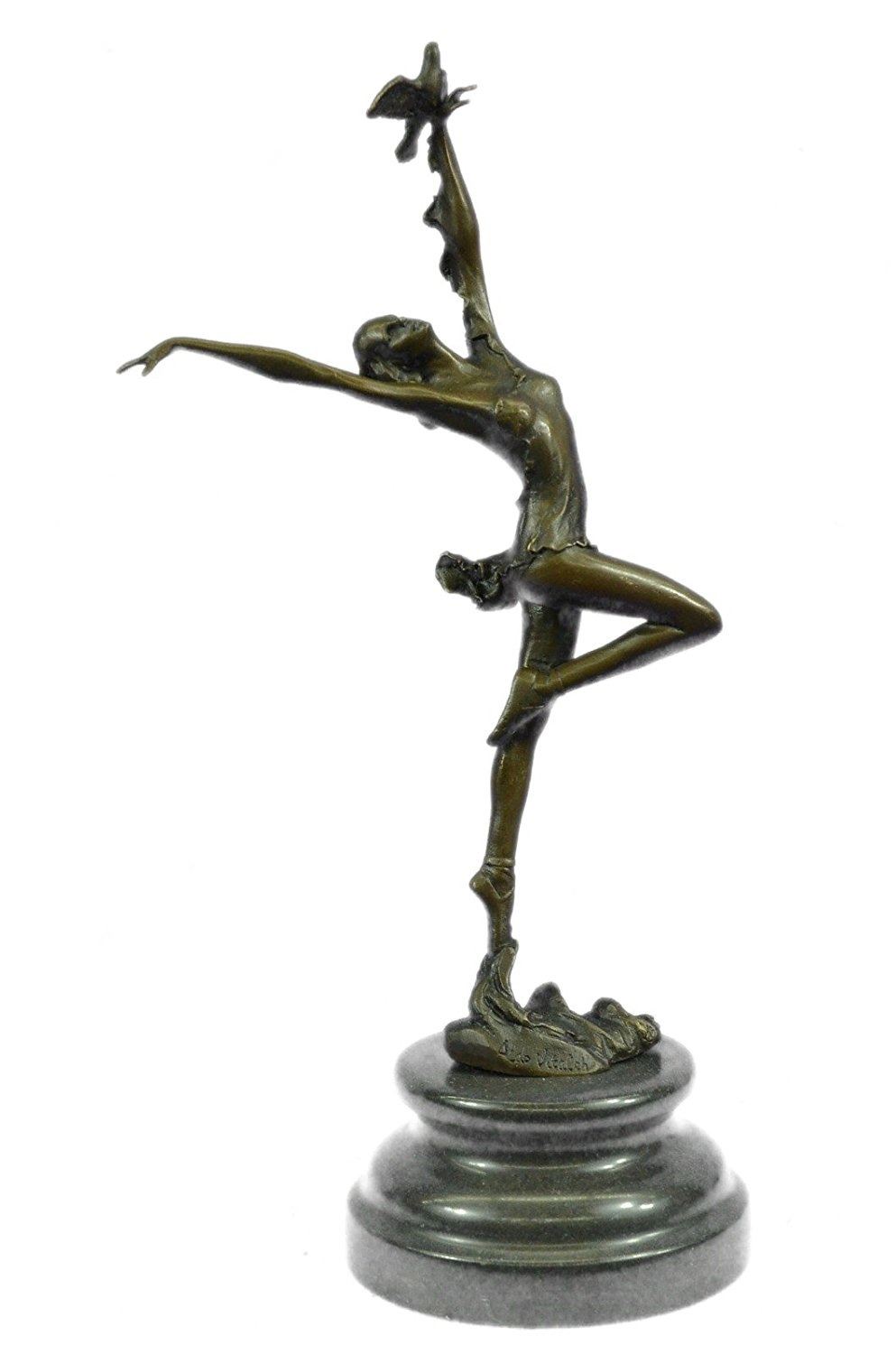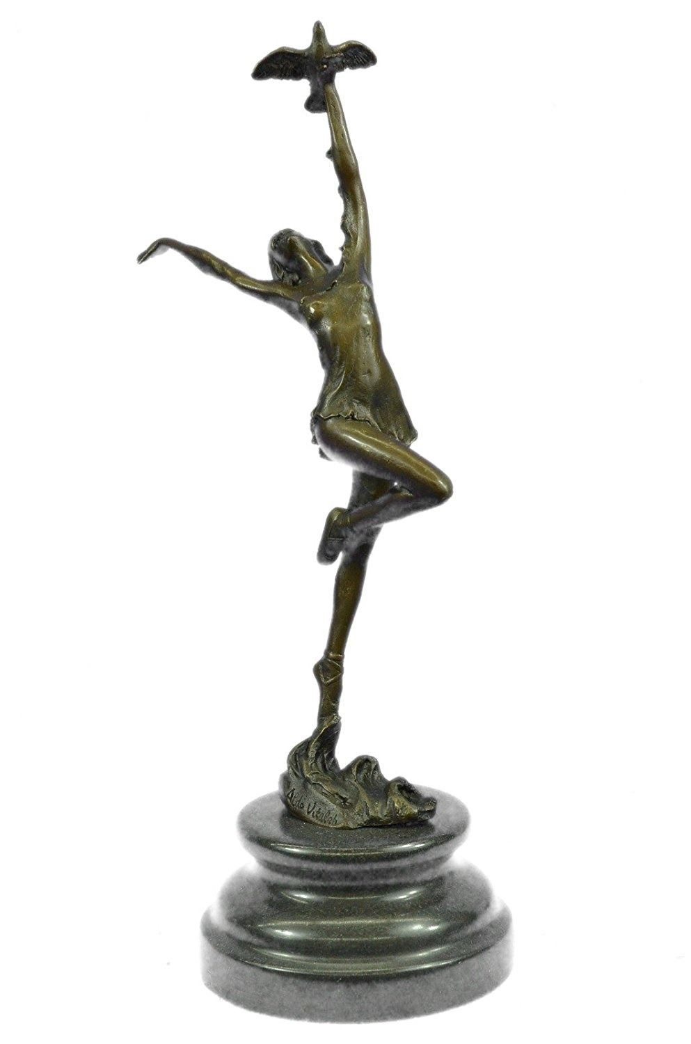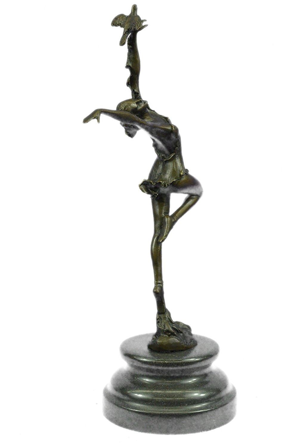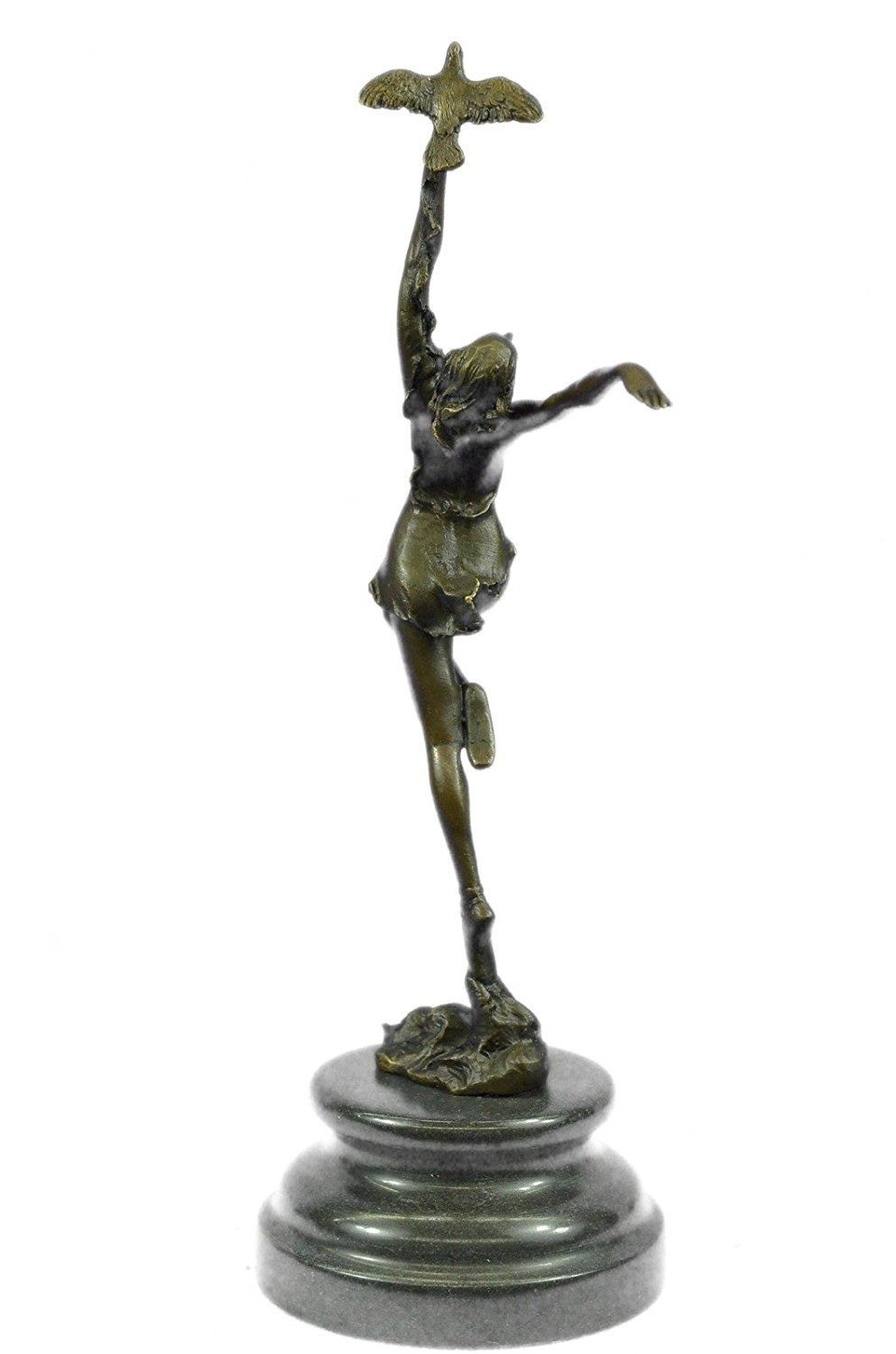 Heavenly Flying Pose This time went to seventh heaven to craft his creation and captured a free spirited move of an angel being assisted by the birds of paradise with complete tranquility absolute serenity. Sitting on a fine round and multi beveled marble base, this work of art is superbly created by renowned sculpture. Bronze Dimensions with Marble Base: Height 13 X Width 5 inches. Weight: 7 LBS. Inventory: 1425S33641