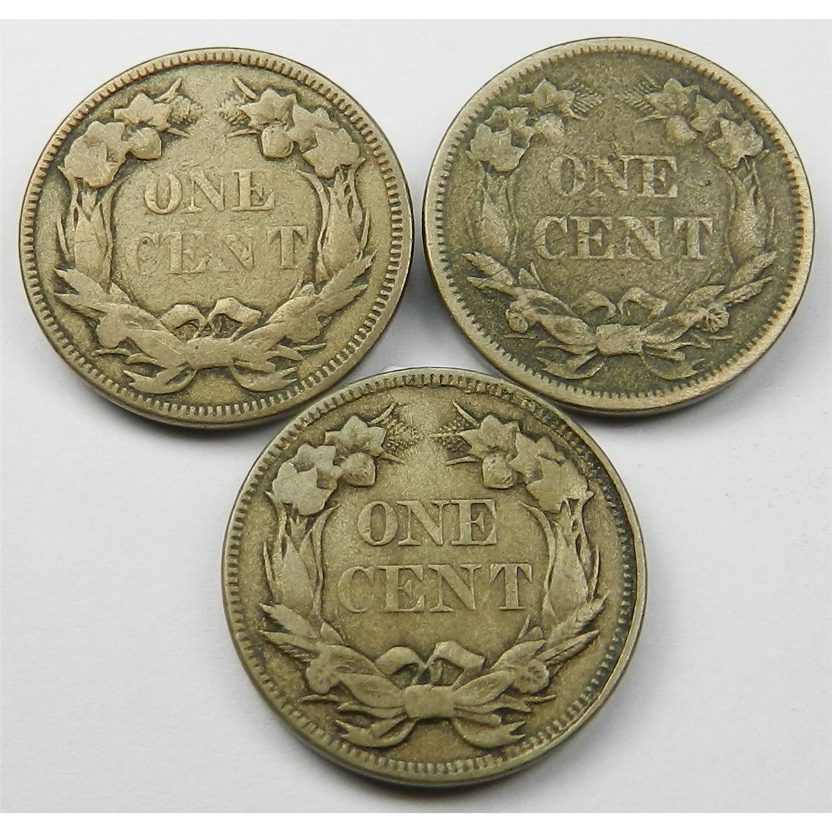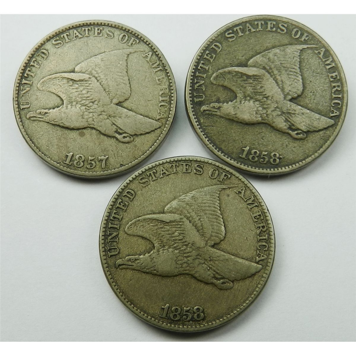 1857, Fine; 1858-LL(2), Choice VF-EF and another struck with 90 degree rotated dies, about VF, slight porosity. 3 coins.
