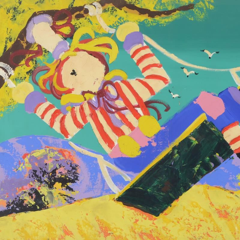 "Flying Machine" is an original oil painting on stretched canvas by Paul Blaine Henrie (1932-1999), hand signed by the artist. Includes Certificate of Authenticity. Measures approx. 48" x 36" (image). ** Please note: Due to the age of this piece and the way it was stored, there are minor sings of wear, particularly on the corners and edges. Also, the bottom-right frame joint is loose which in turn has caused the canvas to become loose in that area; the piece needs to be re-stretched. **