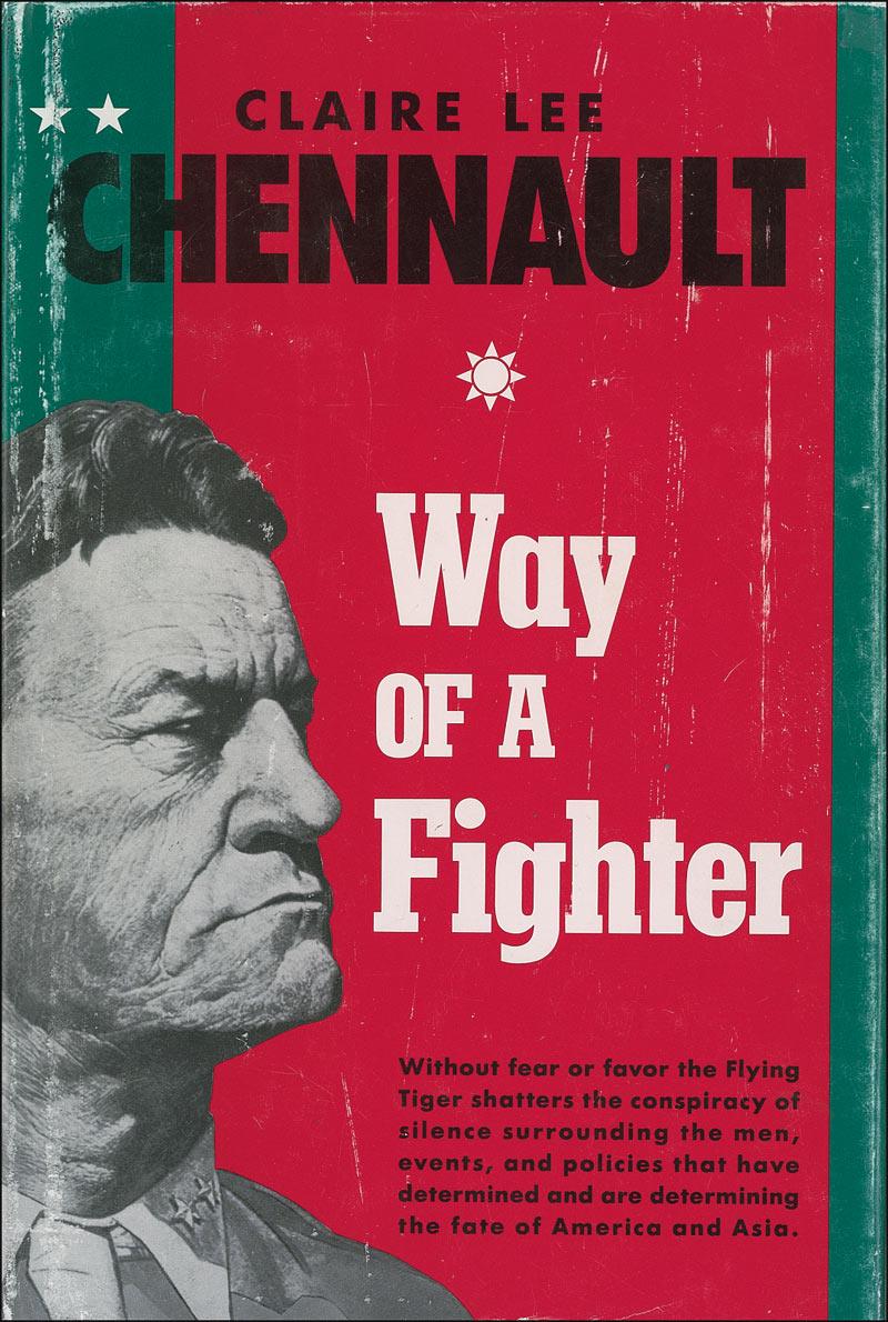 Signed book: Way of a Fighter by Claire Lee Chennault. Limited edition #696/1500 Tucson: James Thorvardson & Sons, 1991. Hardcover with dustjacket, 6 x 8.75, 375 pages. Signed in black felt tip on the limitations page by Tex Hill, Ed Rector, and Bob Scott, with each pilot adding his squadron assignment. In fine condition, with scattered rubbing to the dustjacket. RRAuction COA.