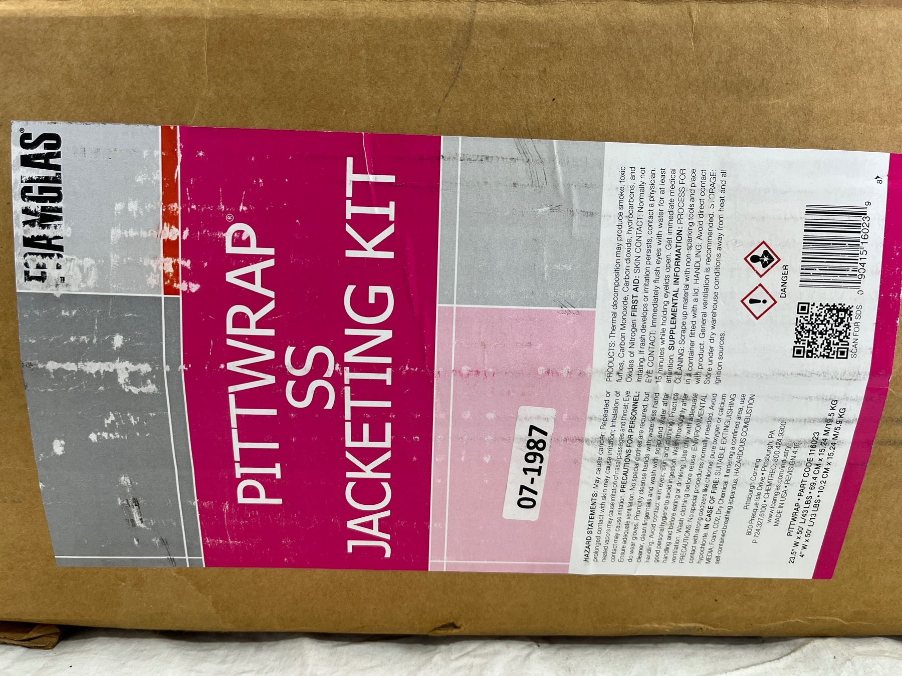 07-1987 part code 116023. Roll dimensions 23.5"W x 50' L, & 4"W x 50'L. Kit weight 56lbs.