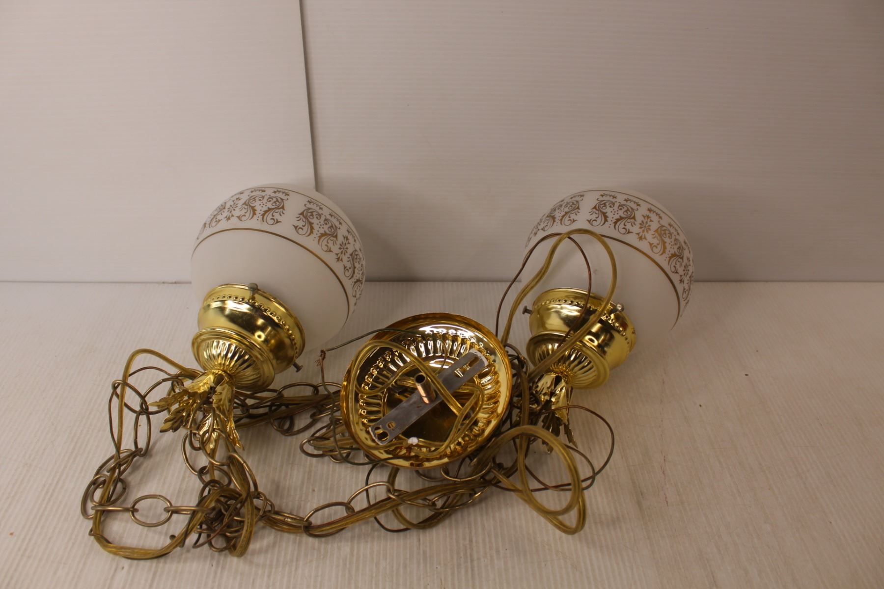 Fog Glass & Gold Colored Fixed Double Swag Lamp