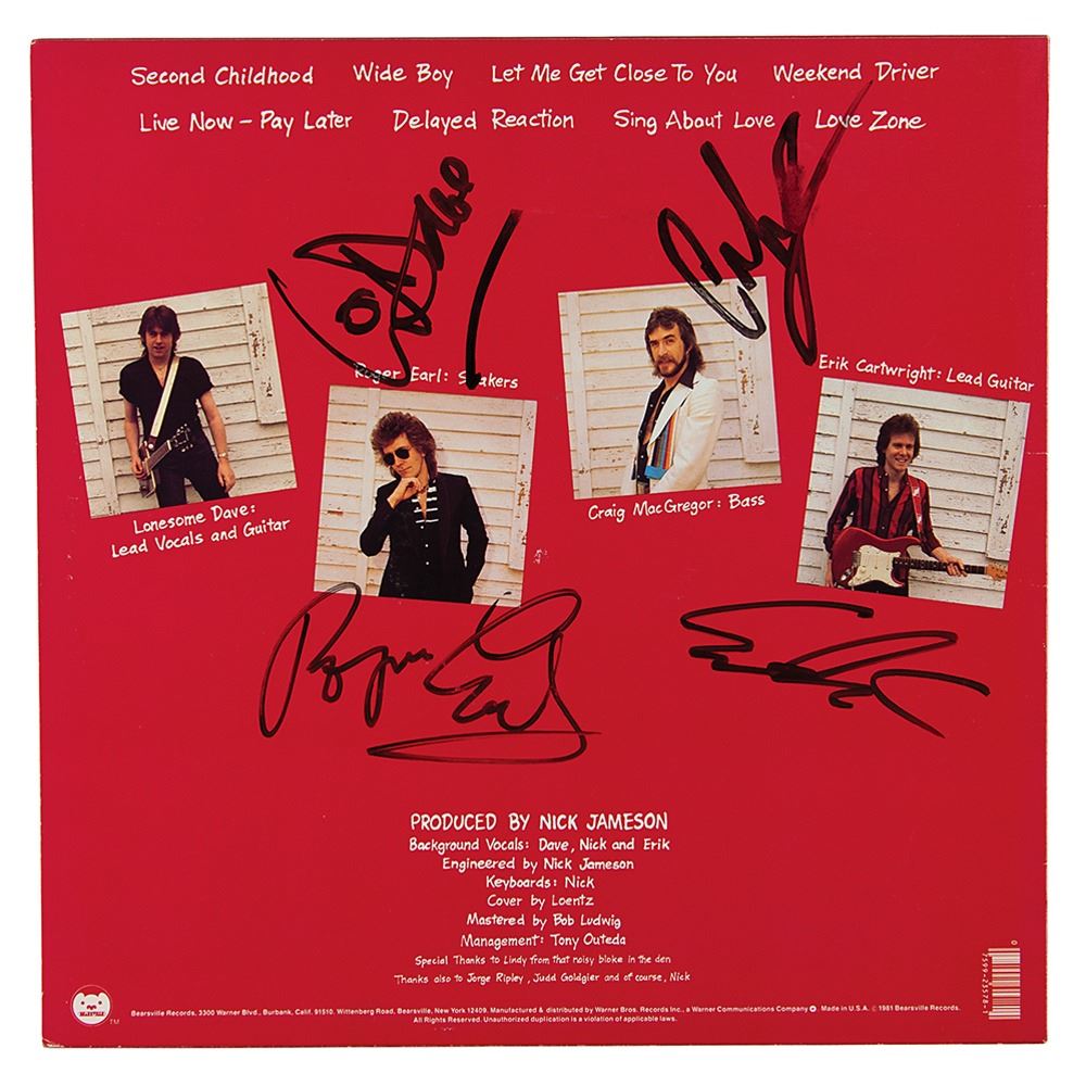 Girls to Chat & Boys to Bounce album signed on the reverse in black felt tip by 'Lonesome' Dave Peverett, Roger Earl, Craig MacGregor, and Erik Cartwright. In fine condition, with a smudge to MacGregor's signature. The record is included.