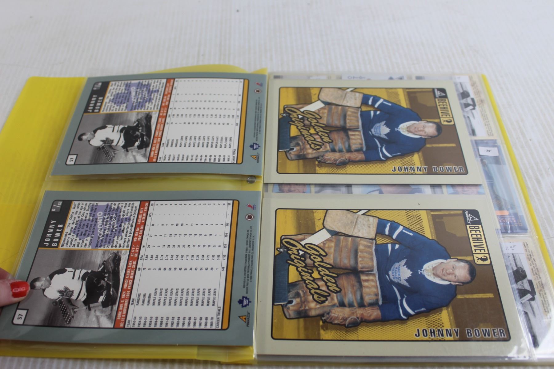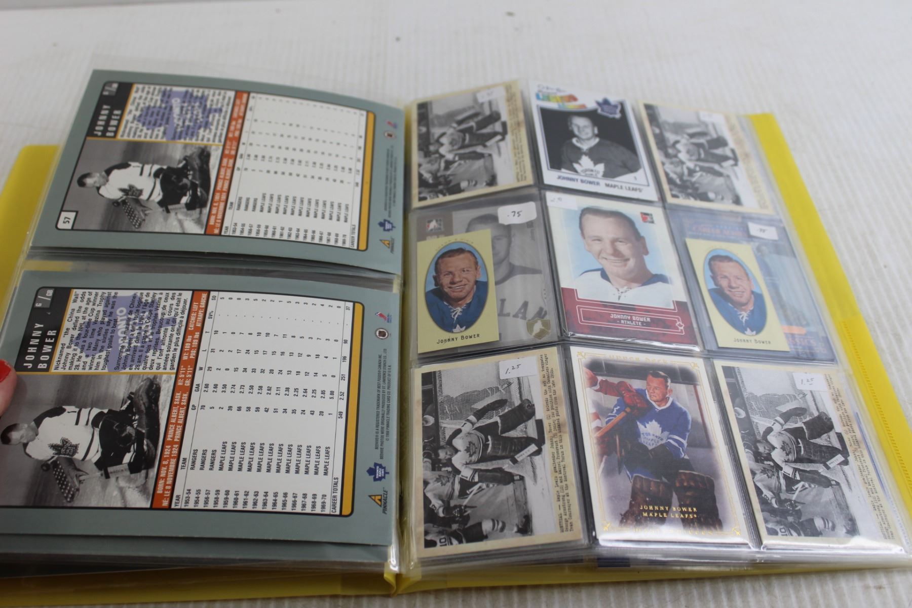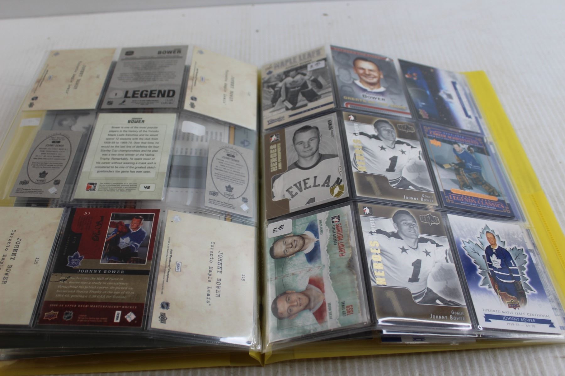 Folder of Johnny Bower Hockey Cards - (7) Pages
