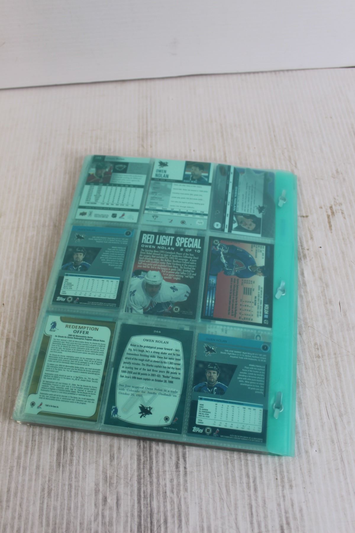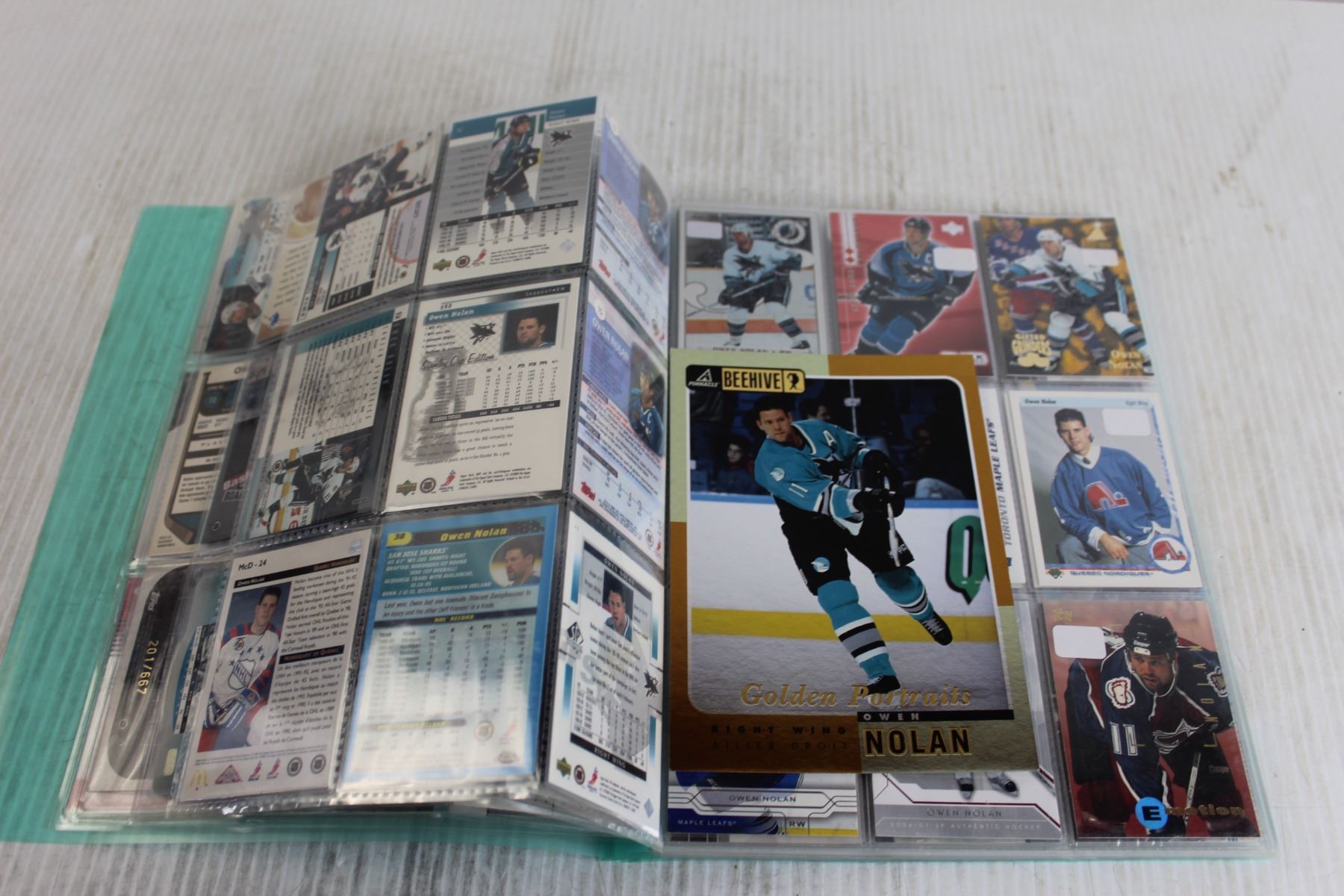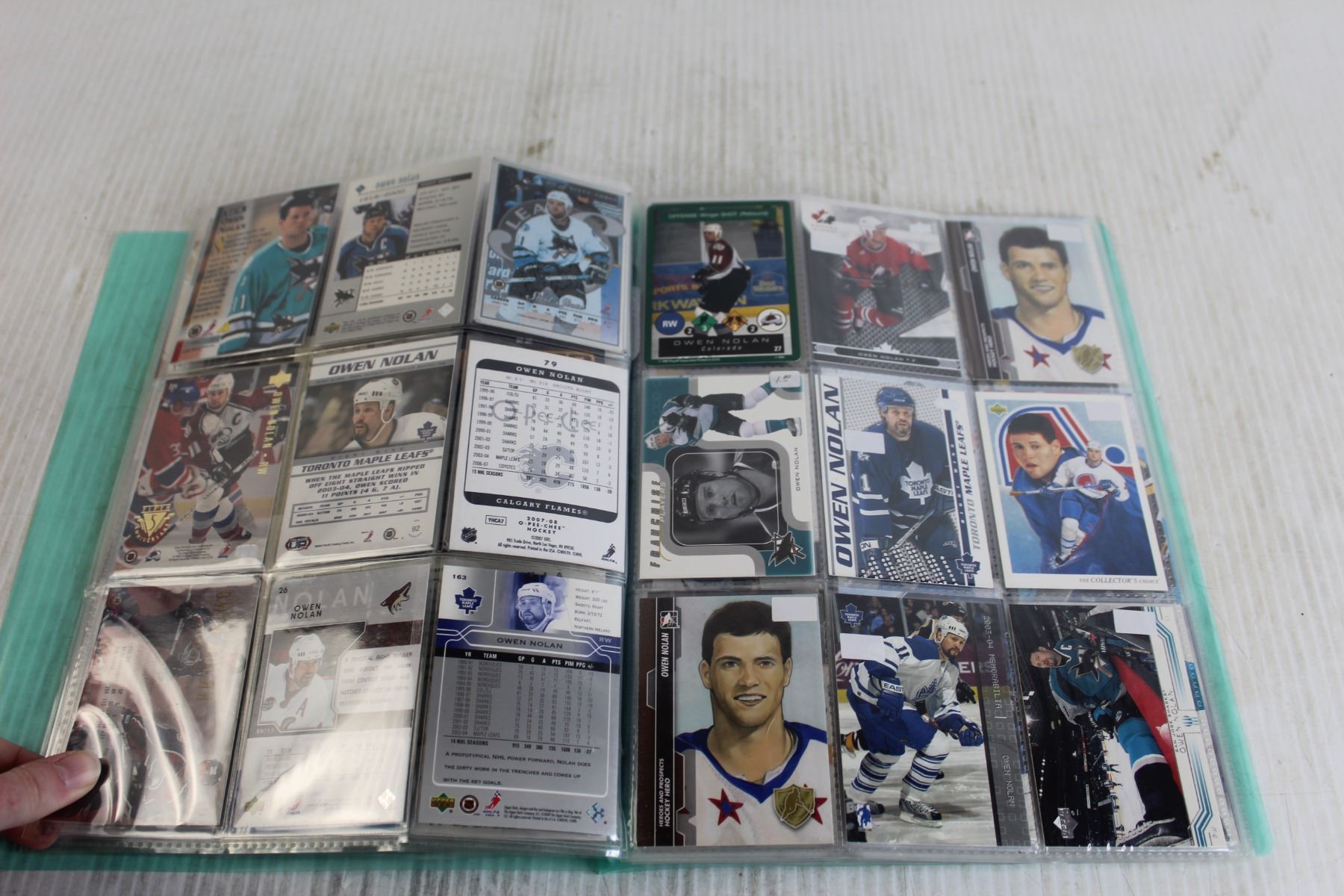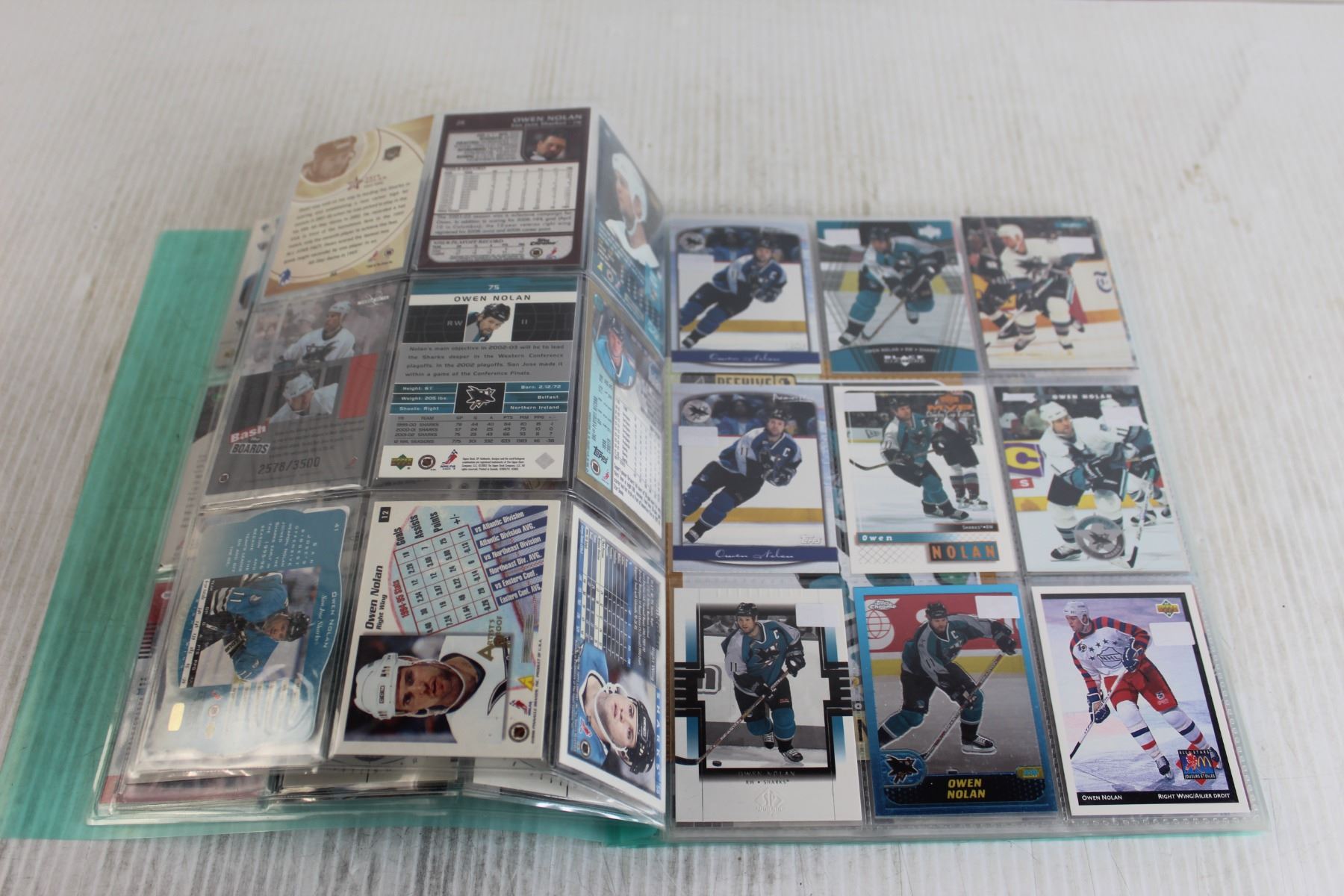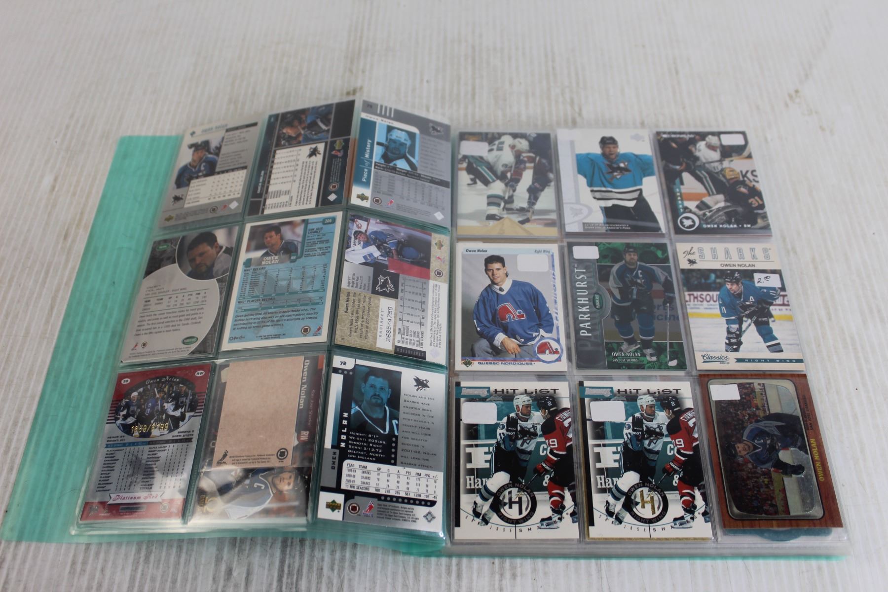 Folder of Owen Nolan NHL Hockey Trading Cards - (13) Pages