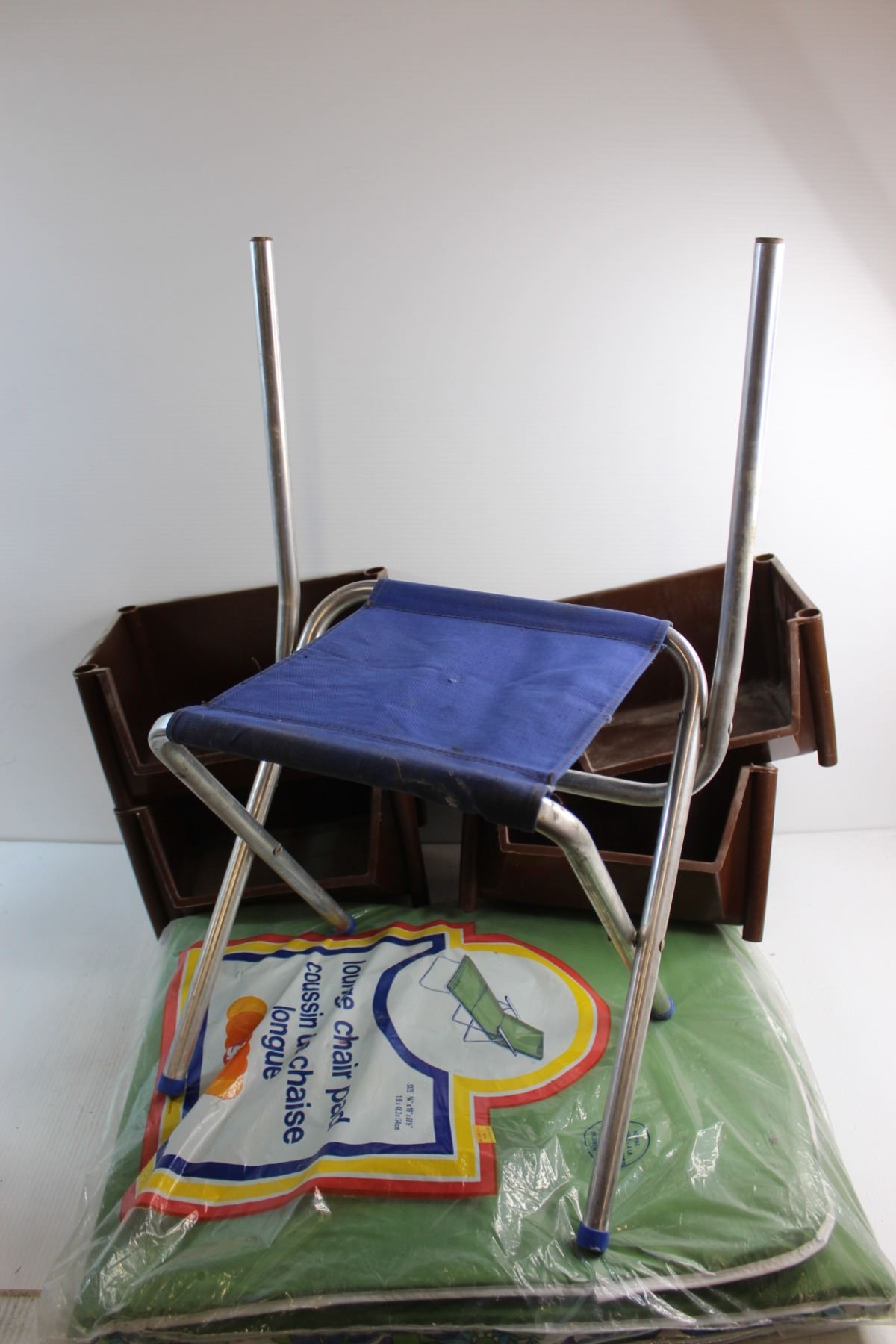 Folding Chair, (4) Storage Containers and Lounge Chair Pad