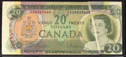 Folding & Cutting Error note. 1969 $20 BC-50a EG4369664. A large streak on the face of the note and shifted to the right.VF-EF.