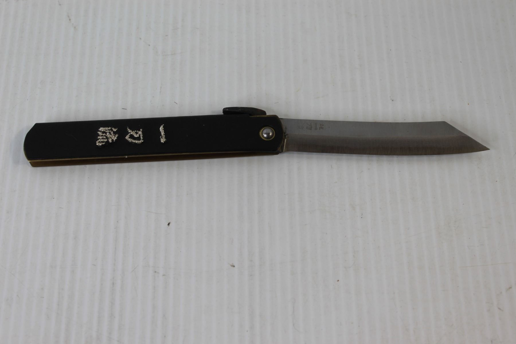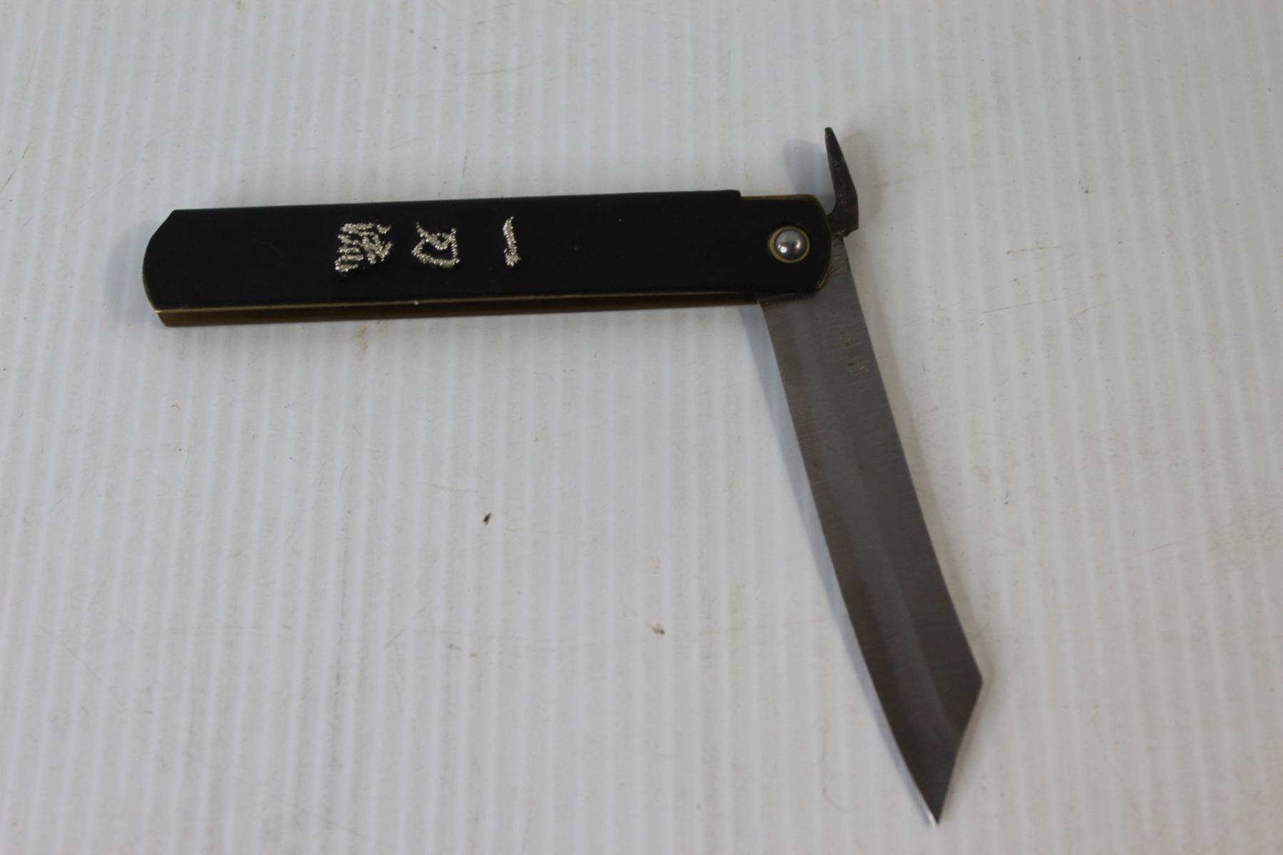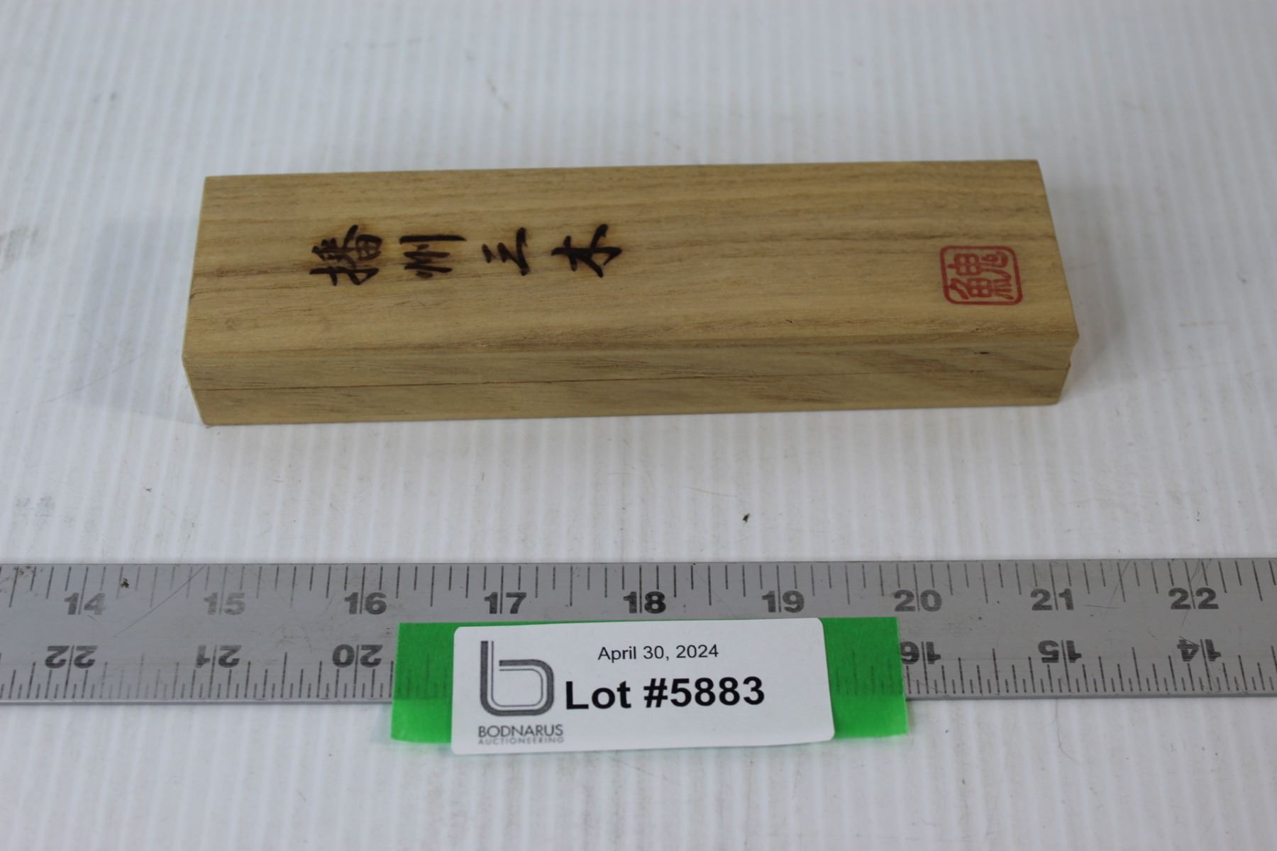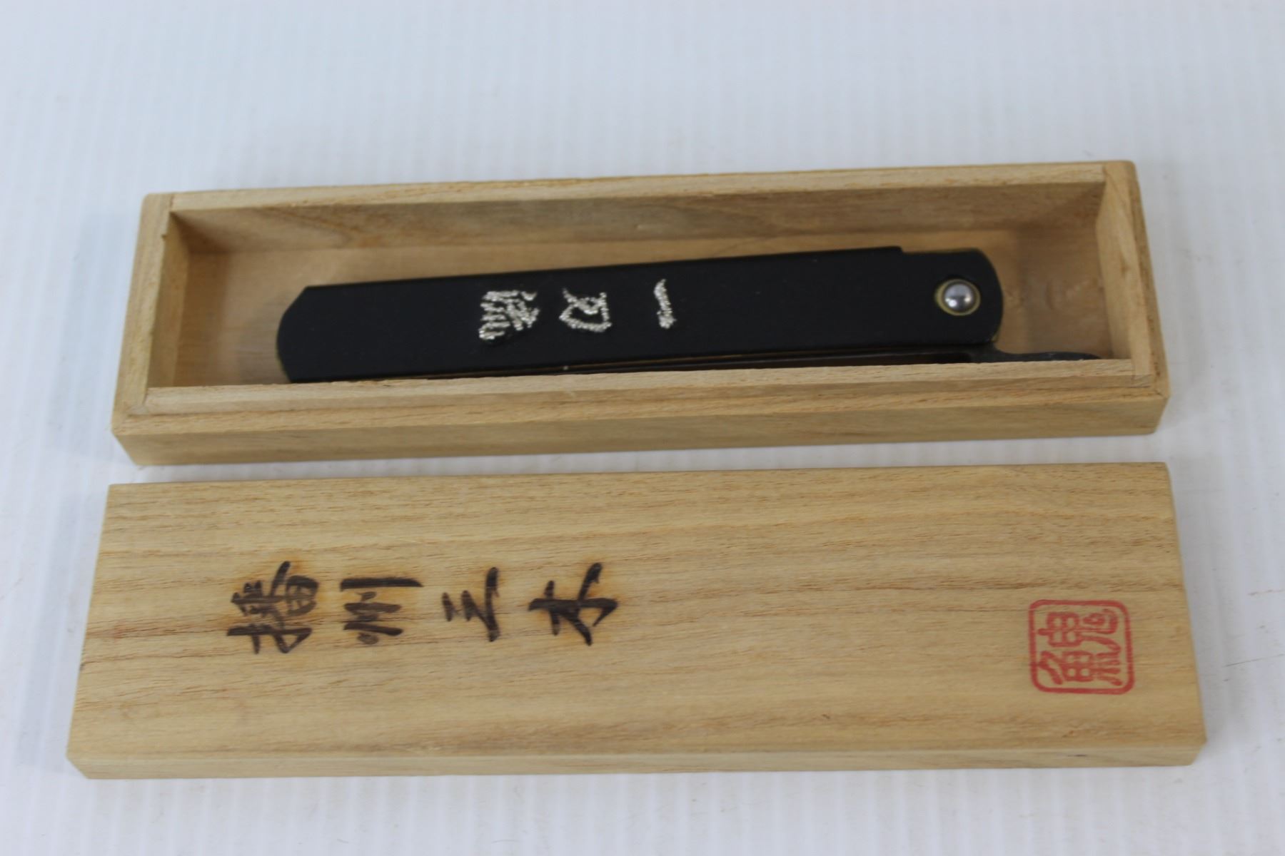 Folding Knife With Oriental Writing Characters In Wooden Box