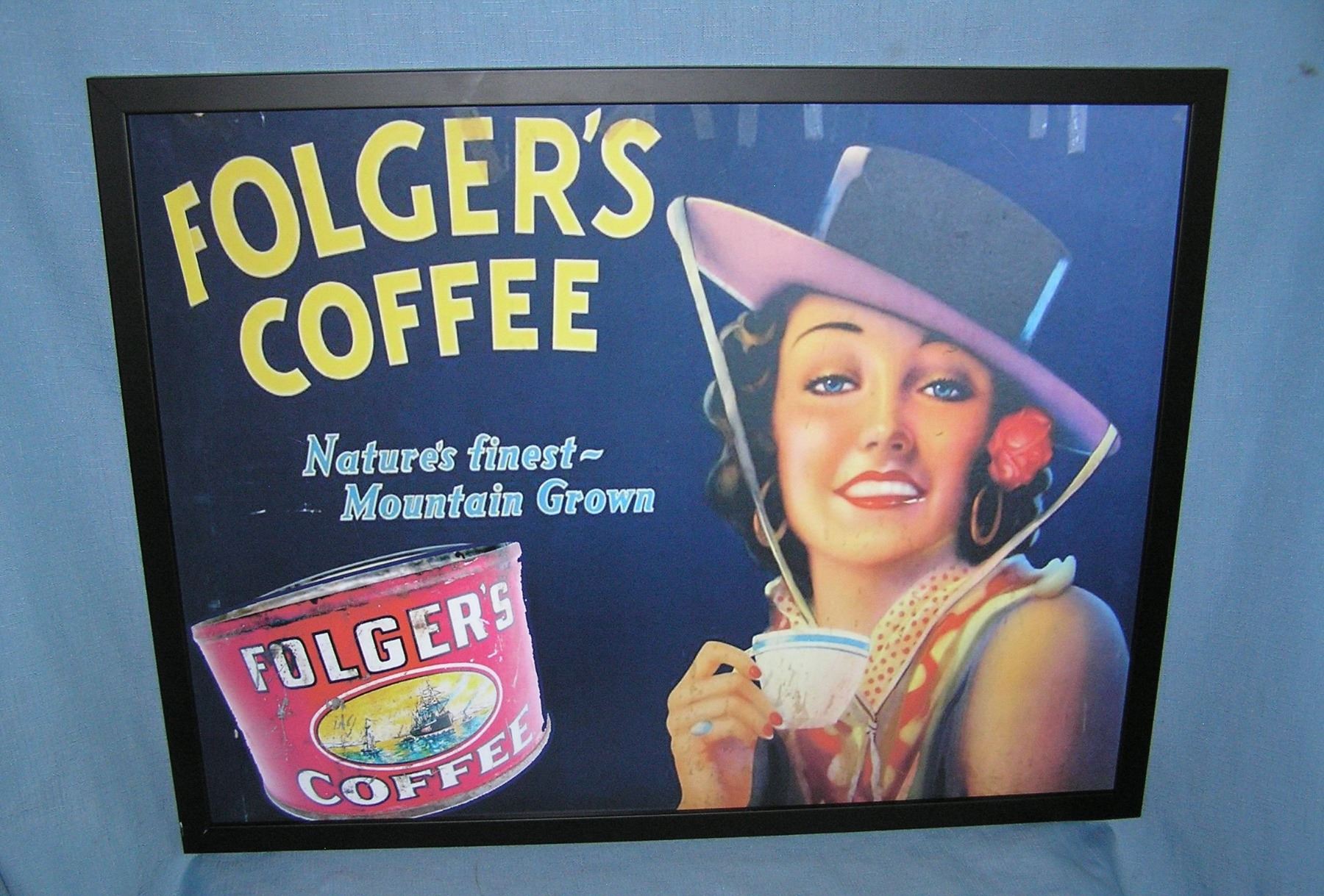 Folger's coffee framed 19 inches by 25 inches retro style advertising sign est. value $225.00-$250.00