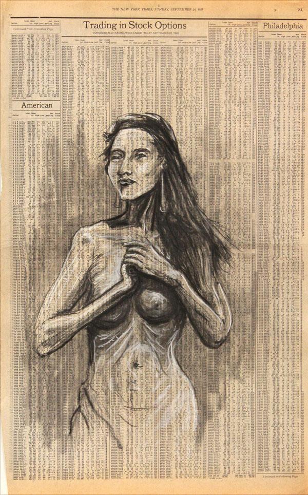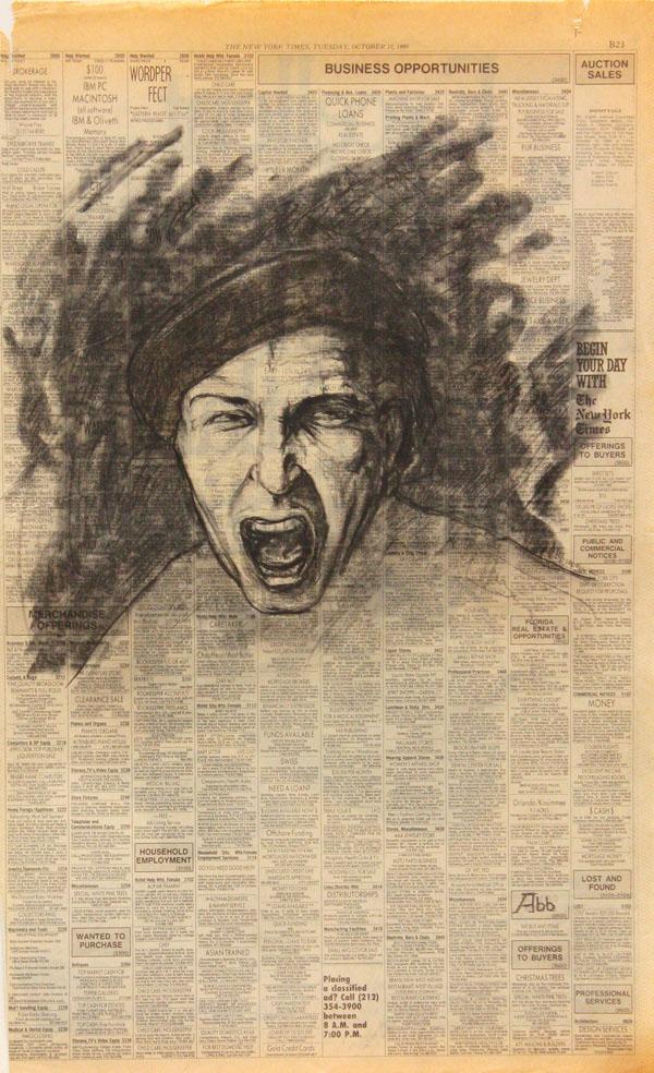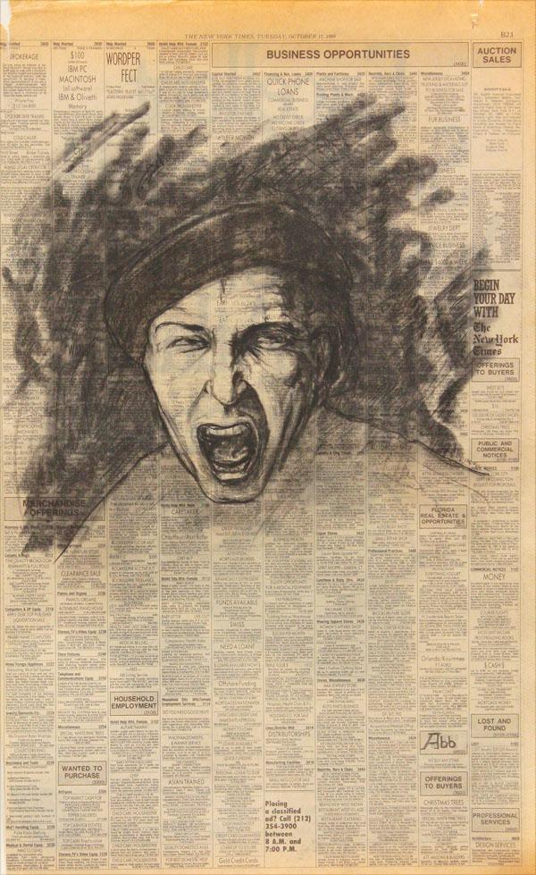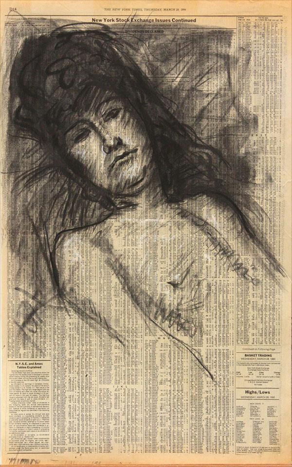 (lot of approximately 276) Folio of assorted charcoal drawings on newspaper, Assorted Figure and Nude Sudies, American School (20th century), some signed ''A. Gordon'', circa 1980s and 1990s (dated on New York Times newspaper pages), folio overall: 26''h x 20''w
