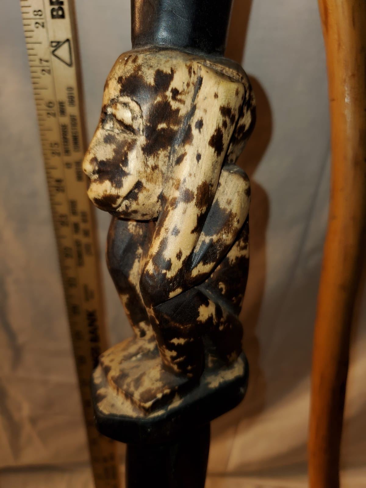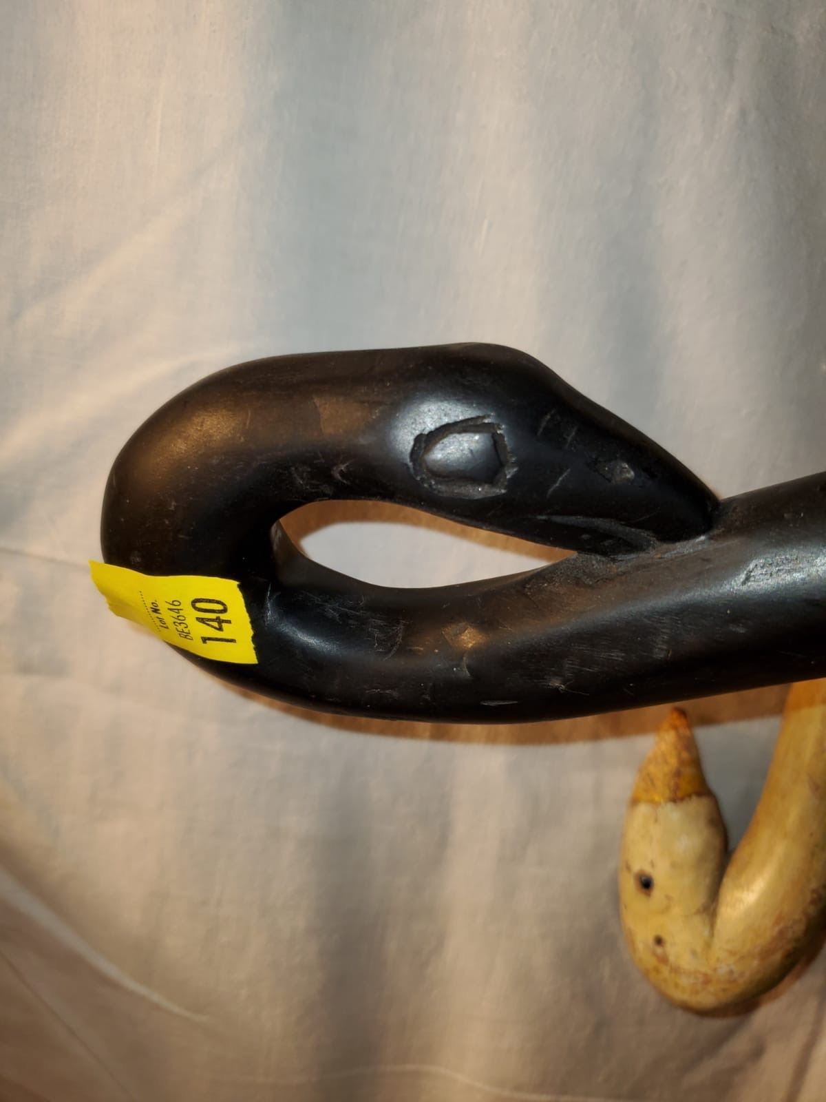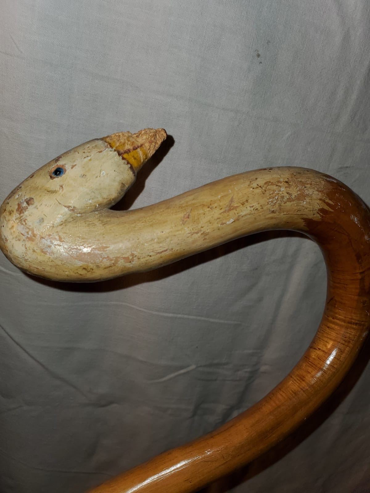 Hand carved Folk Art walking sticks, carved swan, totem figure, snake, etc. Wonderfully hand carved one of a kind collection!
