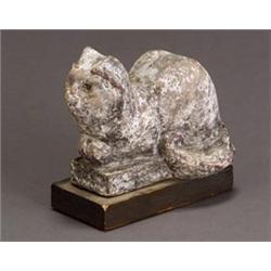 Mounted on a wood base. Wear to painted surface; some traces of paint added at a later period.