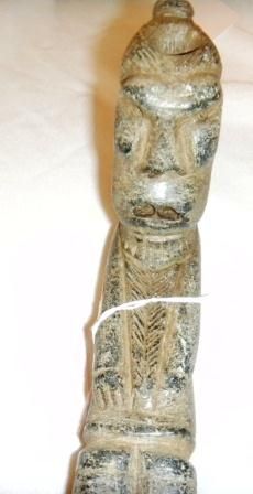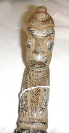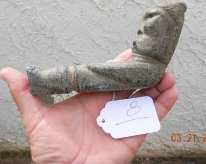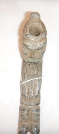 Folk Art Pipe from 1880's South Carolina. This is human effigy measuring approximately 6 1/4 by 1 1/2 by 2 inches. Fine Condition. Shipping $15.00