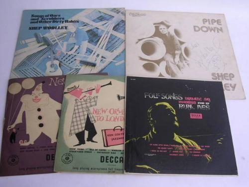 Folk two Autographed Shep Woolley LPs plus three 10" folk LPs