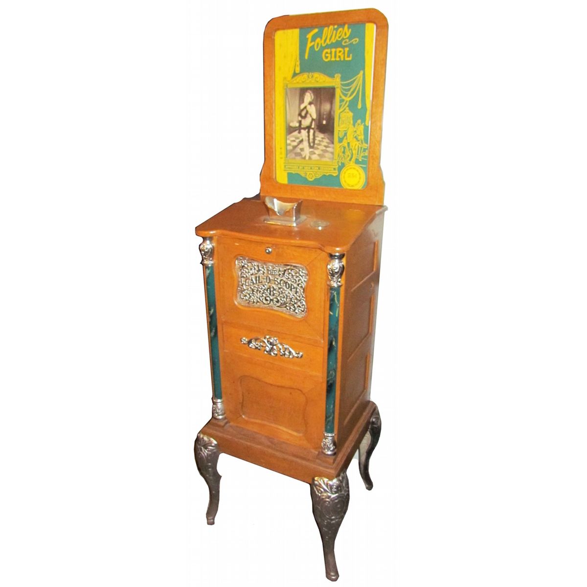 Follies Girl Cail-o-Scope. Drop card 25 cent coin operated arcade game. Comes with a key. 71 inches tall.