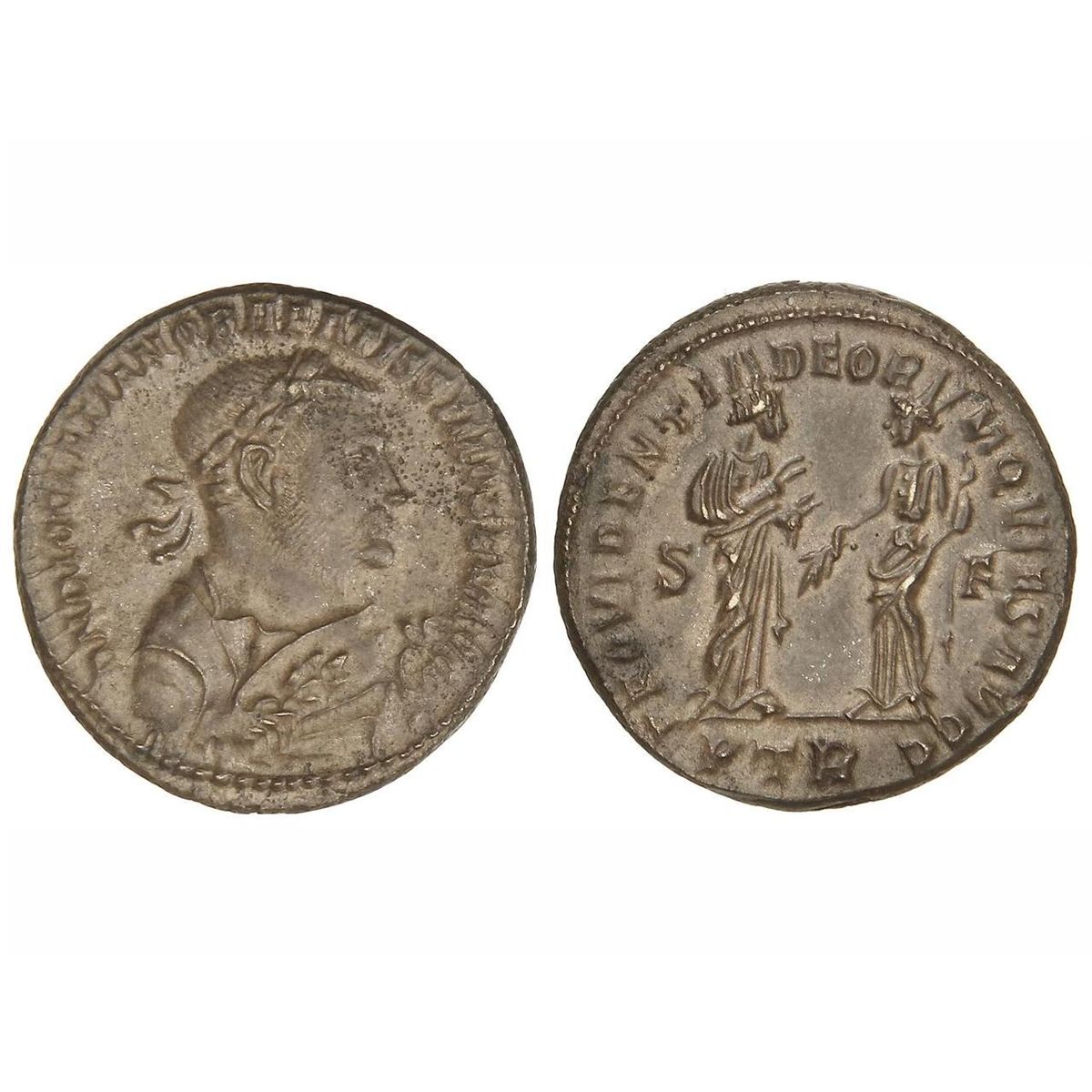 Follis. - Acuñada el 305-307 d.C. - DIOCLECIANO. - Rev.: PROVIDENTIA DEORVM QVIES. AVGG. PTR. En el campo S.F. Providencia y Tranquilidad frente a frente. 10,30 grs. AE. Pátina marrón. C-422. EBC. - -