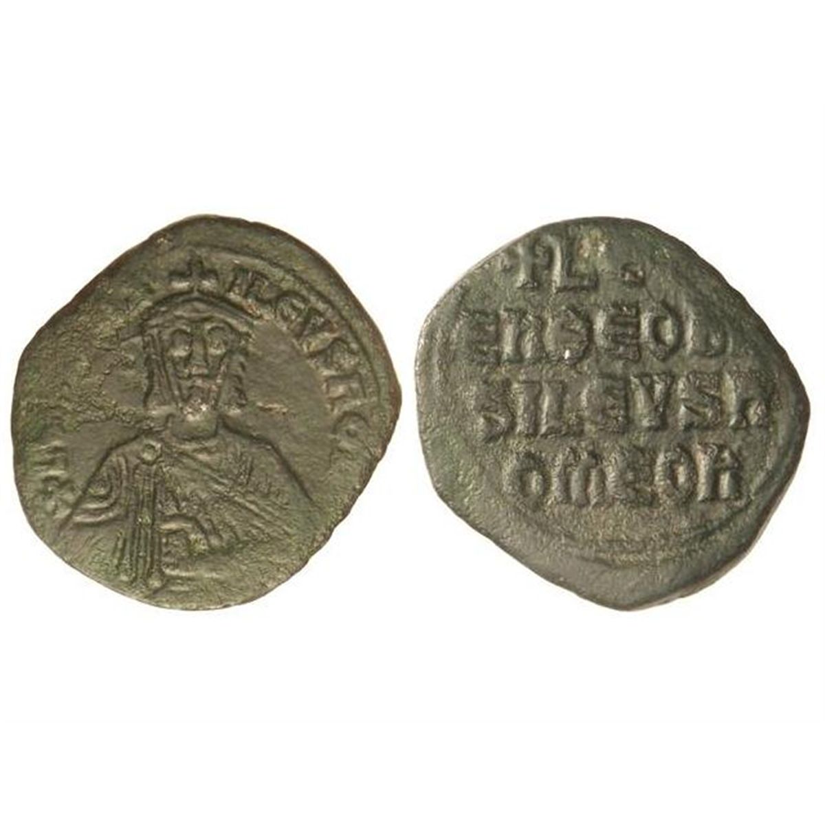 Follis. - LEÓN VI (886-912 d.C.). - CONSTANTINOPLA. - Anv.: LE(ON BAS)ILEVS ROM. Busto de frente. Rev.: LEON/EROEO BA/SILEVS R/O¶EOKI. 6,90 grs. Pátina verde. (Oxidaciones). (MBC). - -