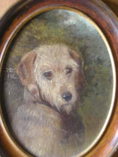 Follower of George Armfield - portrait of a terrier - oil on board, oval, 12cms x 9cms £100-150
