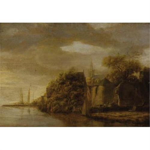 <B>Follower of JAN JOSEFSZ VAN GOYEN </B></I>(Dutch 1596-1656)<BR><I>River Landscape</B></I><BR>Oil on beveled oak panel<BR>15-3/4 x 22-1/4 inches (40.0 x 56.5 cm)<BR>Signed lower right<BR>Old auction stencil: 269LK (on verso) <B>Condition Report:</B> <BR><BR><b>Shipping:</b> Requires 3rd Party Shipping (<a target="_blank" href="http://www.heritageauctions.com/common/shipping.php">view shipping information</a>)