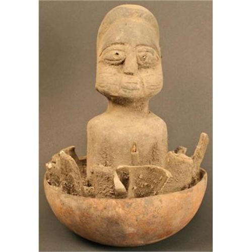 Fon Tribe Gourd Fetish Figure for the Roof of a Home, 8 inches (20cm) height x 5.5 inches (14cm) diameter