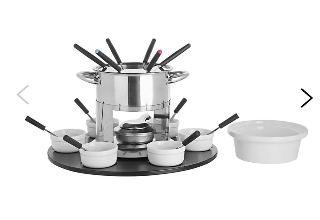 Laila, 3-in-1 Fondue Set, Includes 24 Pieces Perfect For Groups/Parties, 6 Chocolate Forks, 6 Condiment Spoons, 6 Condiment Bowls (5 ounce), 44 ounce Pot Mirror Finish,