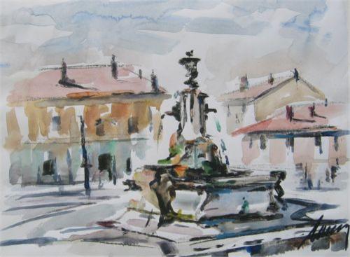 Title: Fontane Vielevente (?); Sunlit Building beyond Trees