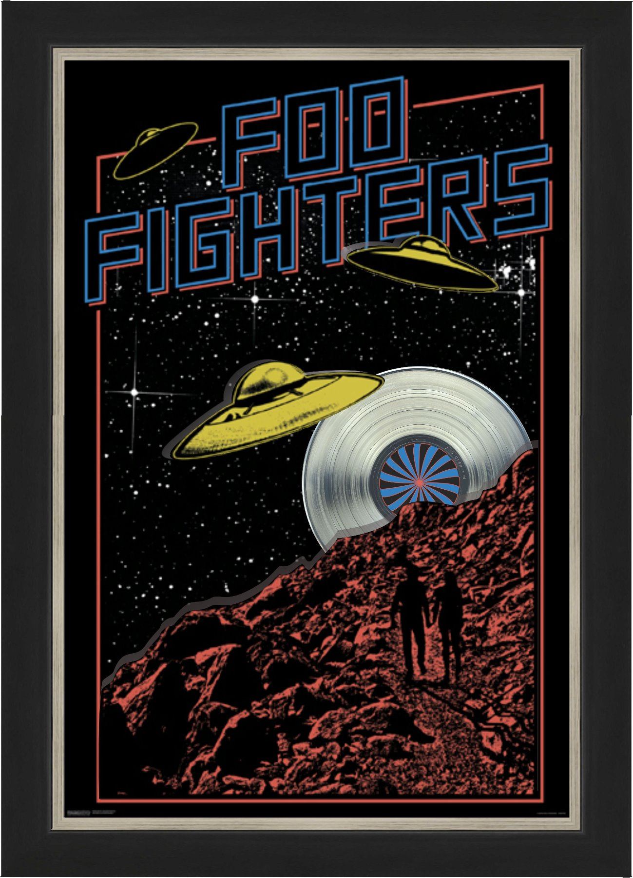 About the Print: The cool thing about this poster is that it is a call back to the early days of the Foo Fighters. The only other time that the flying saucer imagery made an appearance was the cover for their first single, This is a Call.