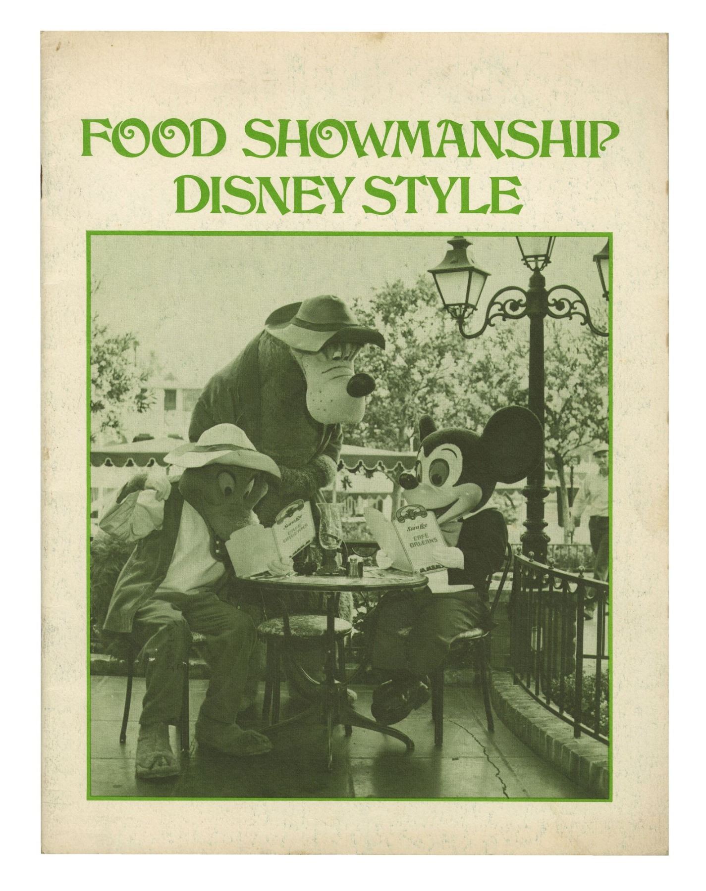 (Disneyland, 1973) A very rare cast member manual for Disneyland's Food Division that describes the different positions and various facts and information relating to the park's iconic food. The 16-page manual measures 11"x8.5" and is in fair condition with some scuffing to the cover, and some spots of dark staining to a few of the interior pages from use.