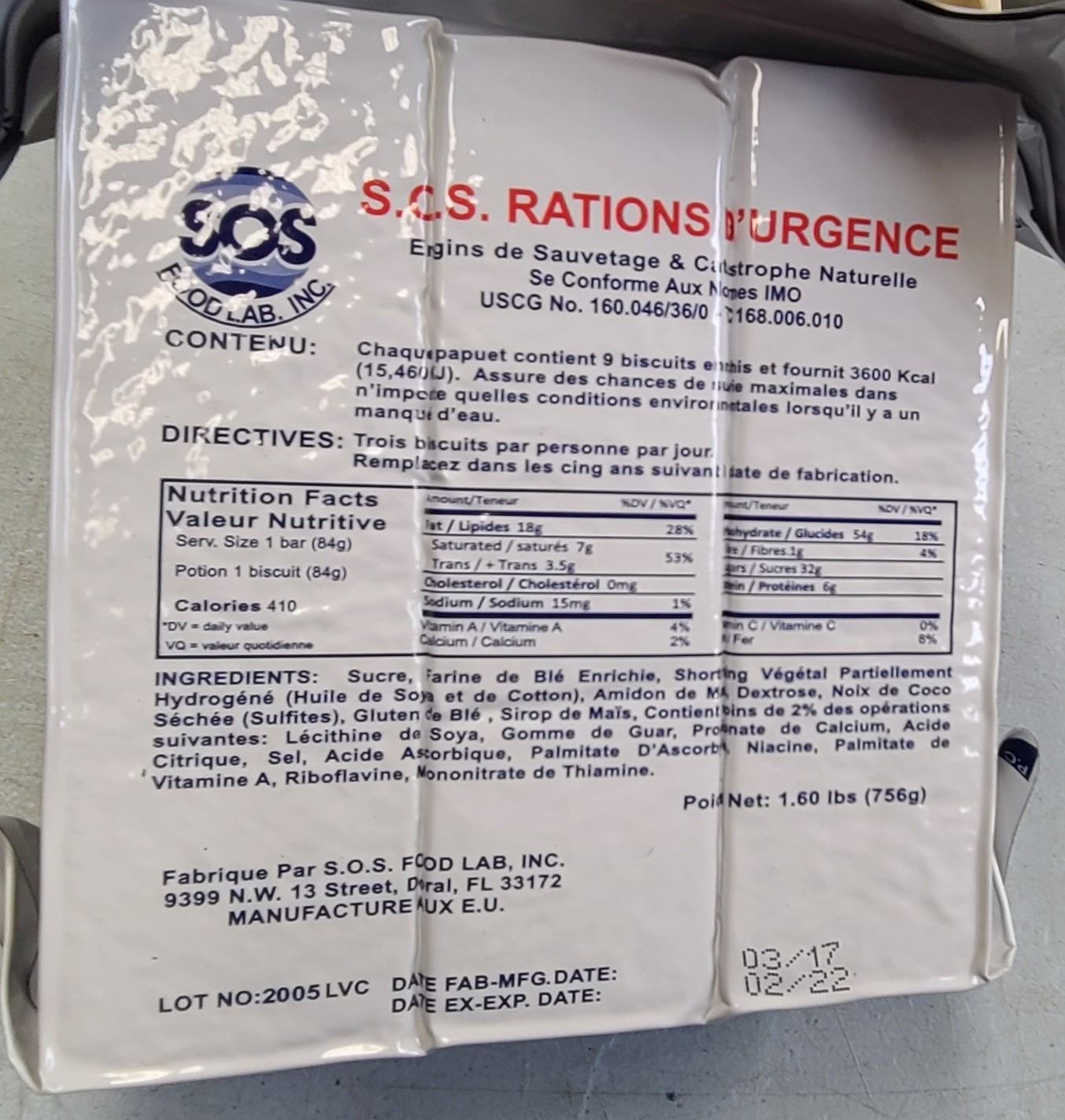 Made by SOS Food Lab - Used on many Life Rafts Worldwide.