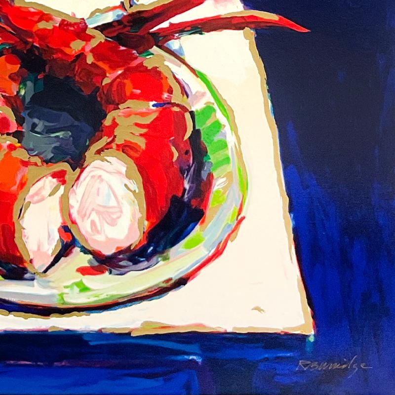 Food for Thought is a limited edition printers proof serigraph on canvas by Robert Burridge, numbered and hand signed by the artist. Includes Letter of Authenticity. Measures approx. 36 x 27 (image).