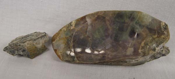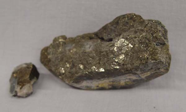 Fool's Gold Specimens. Two pieces, the largest measures 1.5'' x 3/5'' x 1.5''. Fool's gold in calcite.