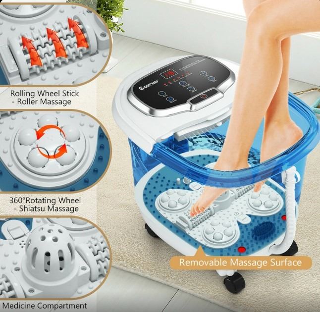 Tired feet deserve this , heated foot spa with jets and massage rollers. Spa night, every night.