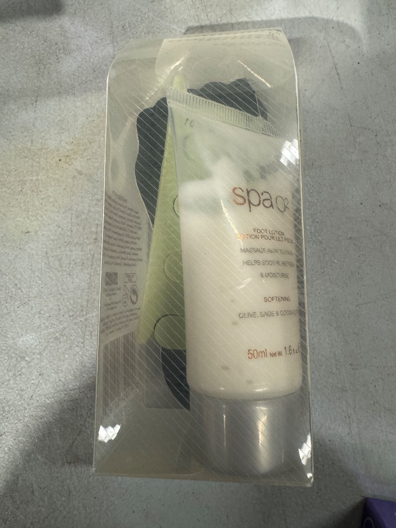 Foot lotion, toe spacers, and nail file