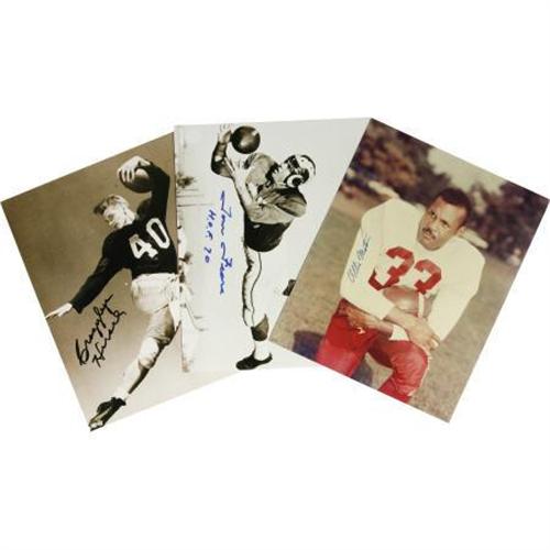 <B>Elroy Hirsch/Tom Fears/Ollie Matson Single Signed Photographs Lot of 3.</B></I> Three Hall of Fame members and early Los Angeles Rams have added signatures to their photos. All three photos are 8x10" with Hirsch signing in black sharpie "Crazylegs Hirsch", Tom Fears signing in blue sharpie, and Ollie Matson adding hi stylish signature in blue sharpie.<BR><BR><b>Shipping:</b> Flat Material, Small (<a target="_blank" href="http://www.heritageauctions.com/common/shipping.php">view shipping information</a>)