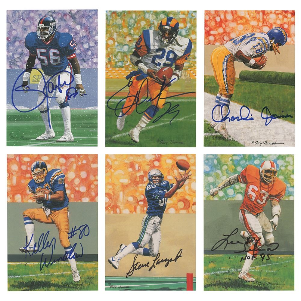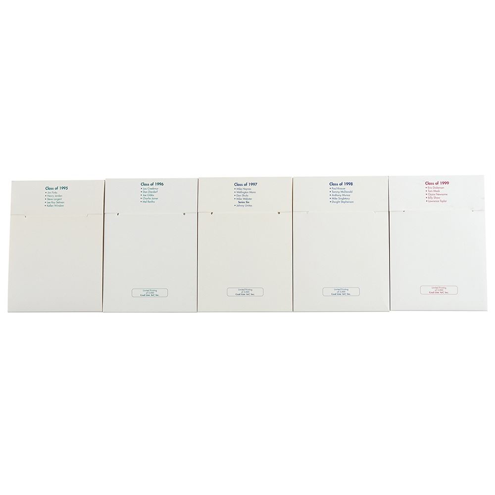 Five sets of Pro Football Hall of Fame Art Series cards made by Goal Line Art, Inc., honoring the HOF classes of 1995 through 1999, with a total of 19 cards.