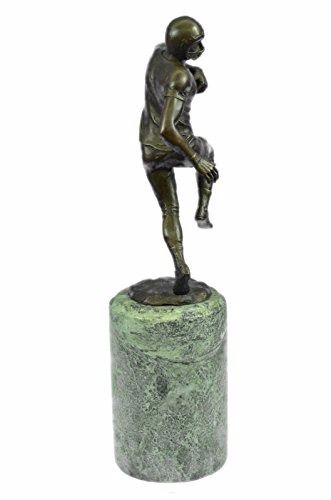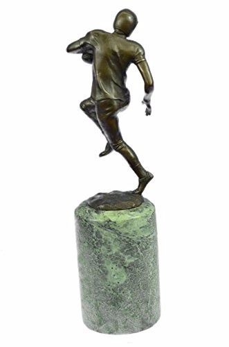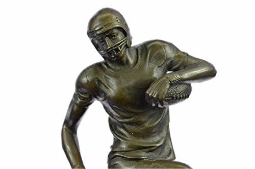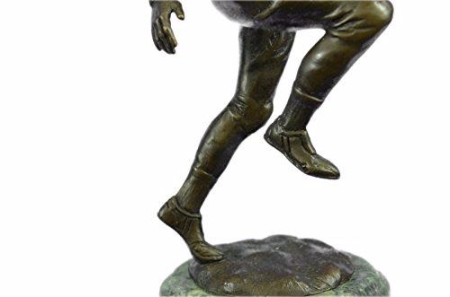 A Muscular Football Player Runs For The End Field, Trying To Skip The Yards And Avoid Being Tackled. His Powerful Legs Ache As He Sprints And Dodges. He Tucks The Ball Under His Arm Protectively. Every Once In A While He Glances Over His Shoulder To See How Close His Opponents Are. He Eyes The White Touch Down Line. This Brown Patina Sculpture Was Cast Using The Lost Wax Method And Mounted On A Marble Base. Bronze dimensions with marble base: Height 12 X Width 4 inches. Weight: 7 lbs.Please Note: This is a reproduction bronze sculpture from the original molded and signed. This featured bronze sculpture is a recast after the original, and has been done recently. This 100% bronze sculpture is an abstract piece certain to be a conversation piece.Please Note: This is a reproduction bronze sculpture from the original molded and signed. This featured bronze sculpture is a recast after the original, and has been done recently. This 100% bronze sculpture is an abstract piece certain to be a conversation piece.