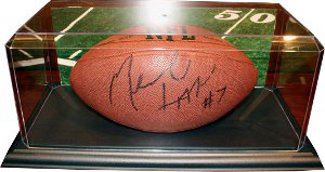 This product is injection molded, using water-clear polystyrene with black base. The result is a very clear, hard (rigid) plastic container, that displays the contents well. Perfect For your collectible football. Comes with Grass insert for base and field insert for back image. Overall Size - 15.5" x 7" x 6". A great way to display your football. (football not included)
