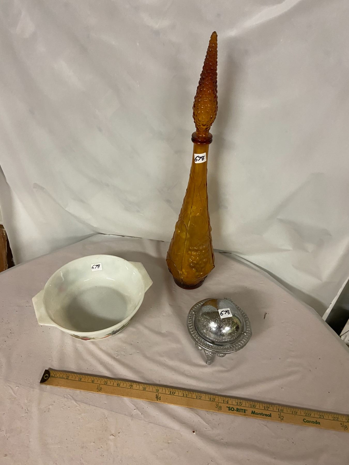 Footed Butter Dish , Bowl , Decanter - Art Deco